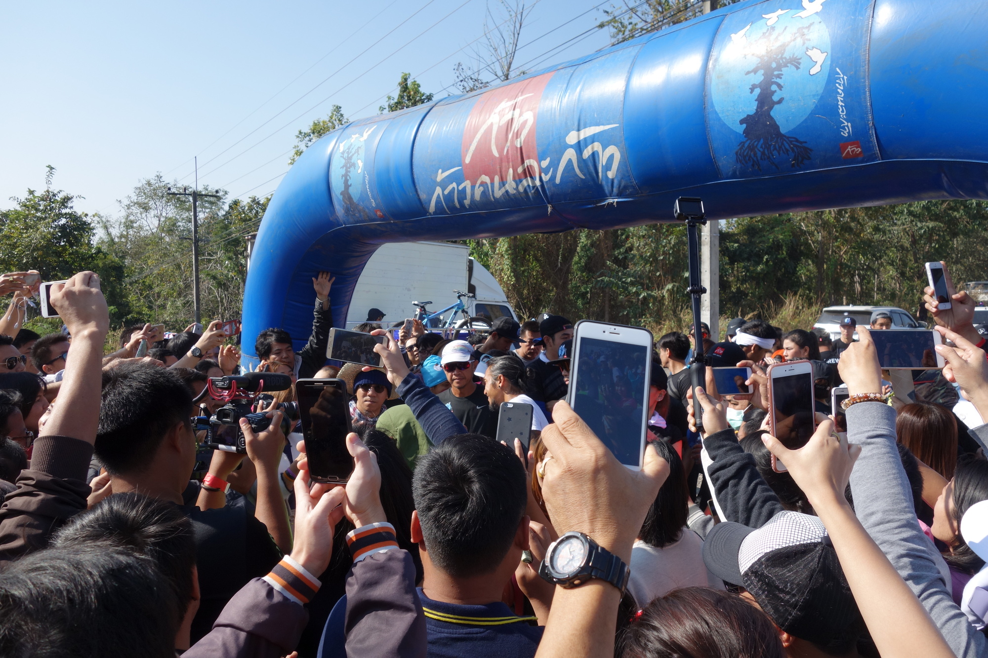 Only when the whole screaming group had slowly moved north an elderly lady introduced herself as a retired school teacher and told me this had been "Toon Bodyslam", one of Thailand´s biggest rockstars who is running up the country from south to north and has already gathered 90 million Baht for various hospitals. Good on you, Toon!
