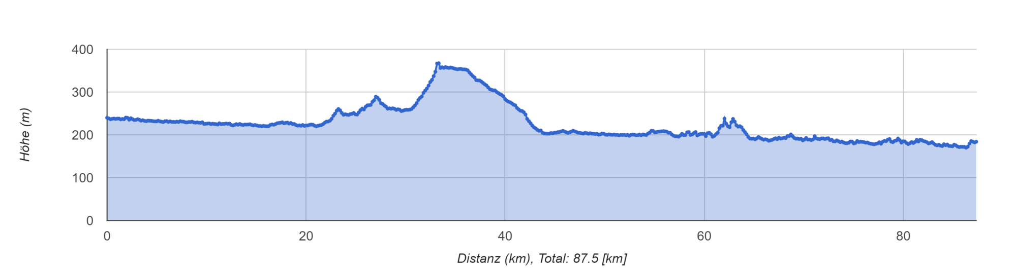able to breathe properly again. Quickly some words regarding the route: Just one "climb" at 30 km for approx. 3 km but with a very moderate gradient. I didn´t even need to use my small sprocket on the front.