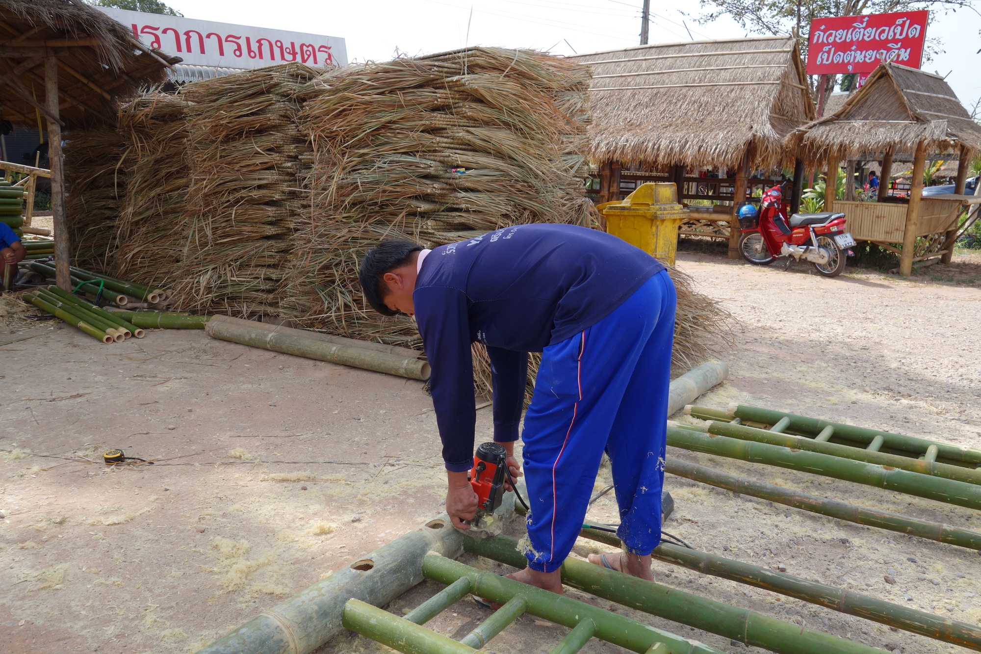 As I may have said before: Men at work is one of my very favourite motives. He is building one of the ubiquitous bamboo shelters you can see in the background