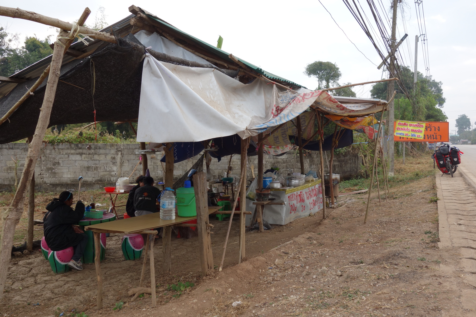 Bot from the bike shop had recommended to use the rural road 4009 as it runs parallel to the far more busy 201. When I rolled out of town in the morning via the industrious morning market I was almost sad to leave Loei. I really like this town but I gave you the reasons for my departure in yesterday´s post. Just before I turned onto the 4009 I saw that - I can´t really call it restaurant - food shed on my left. I believe I can almost sense nowadays when a place might be worth stopping for. And this place run by two old ladies was just outstanding.