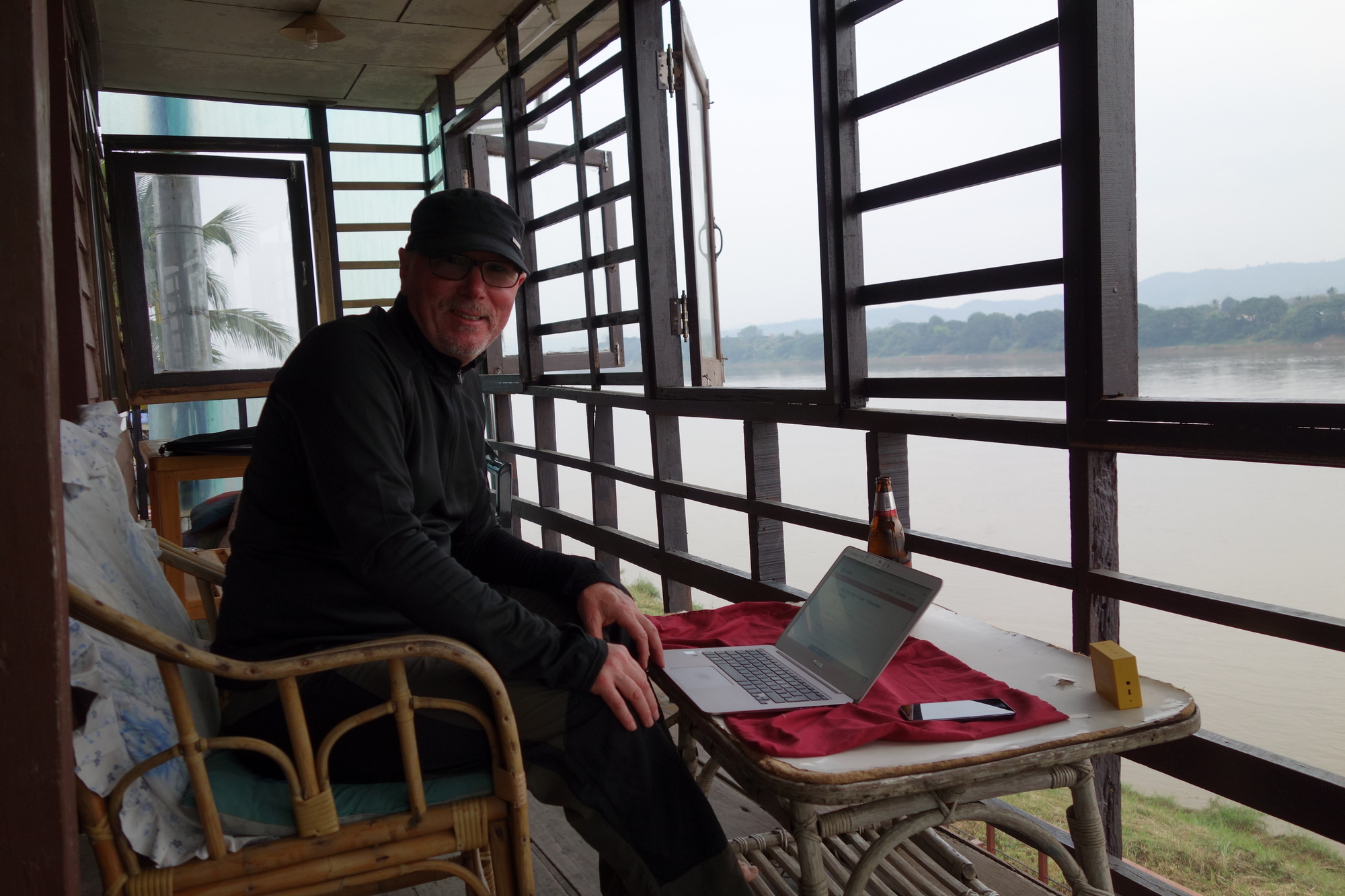 Back to me finding accommodation: In the end I went back to the Chiang Khan Guesthouse where I stayed twice before. It used to be managed by Ong and Pim but she "ran away" as he told me. Very likely because of his poor to non-existing housekeeping qualities. The place is run down, almost filthy, but at the same time still in a prime location right on the river. And I really do like Ong, he is such a genuinely friendly person. In the end I took things into my own hand and gave room no. 6 a proper cleaning which took me less than 30 minutes. Realistically I should have looked for something "better" but I am predominantly sitting on one of the two 1st floor balconies (either looking over the river or down on the walking street) and that my friends, makes up for any other deficiency! As I said yesterday some bad weather will be moving in tonight so two nights in Chiang Khan for me, please.