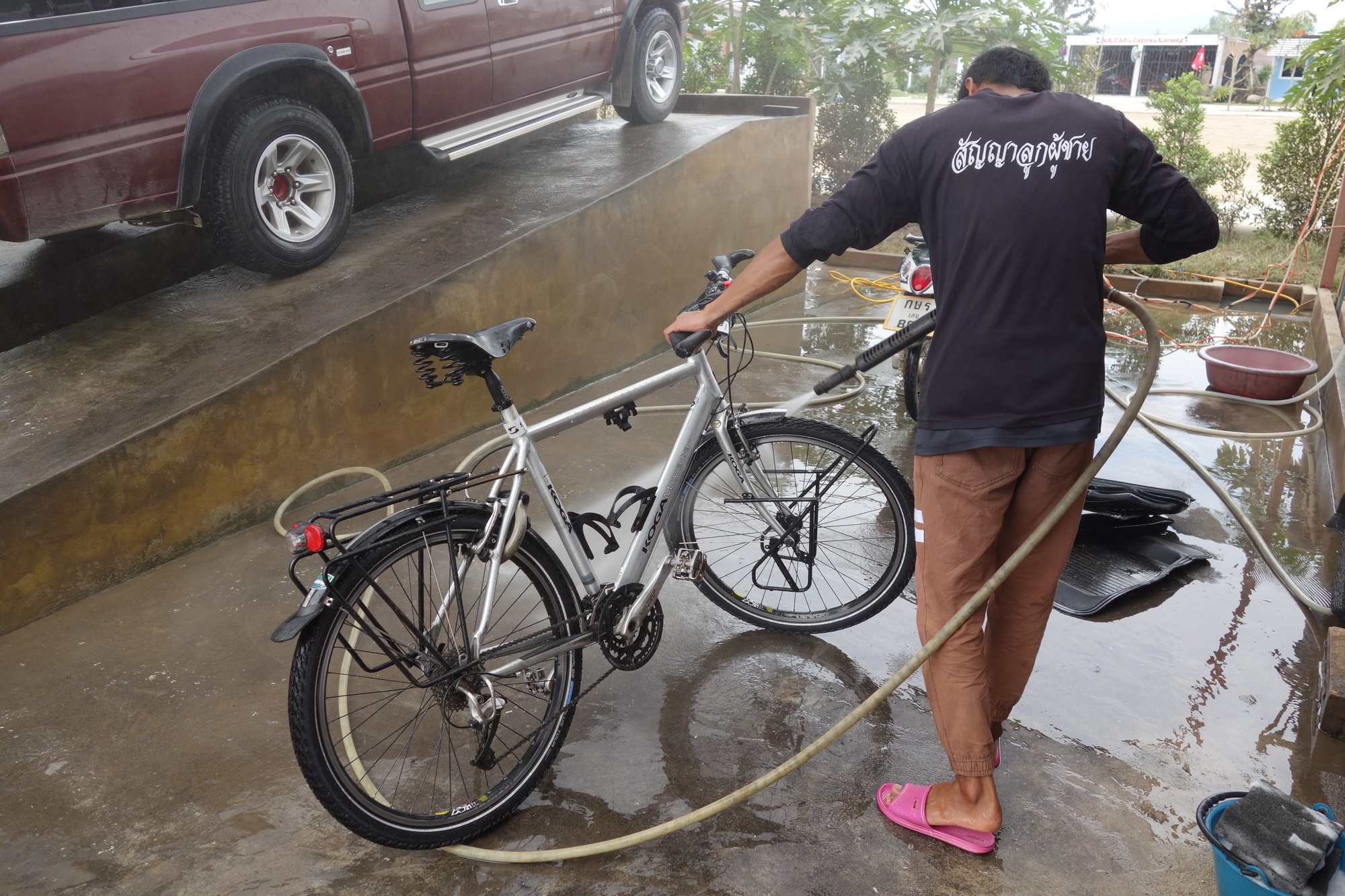 After 27 km you will have to turn left for the last 20 km on Hway 21. As soon as I rolled onto the highway I saw a carwash in action on my left. The solution for the red mud all over my bike! Ra kah tau rei, khrap?- How much is it, please? - Ji sip (20) Baht. And that was for instant and thorough cleaning WITH blowdrying at the end. Just briefly about the rest of the ride: The 201 awaits you with similar challenging first 12 km but the last 8 are once again a very easy finish.