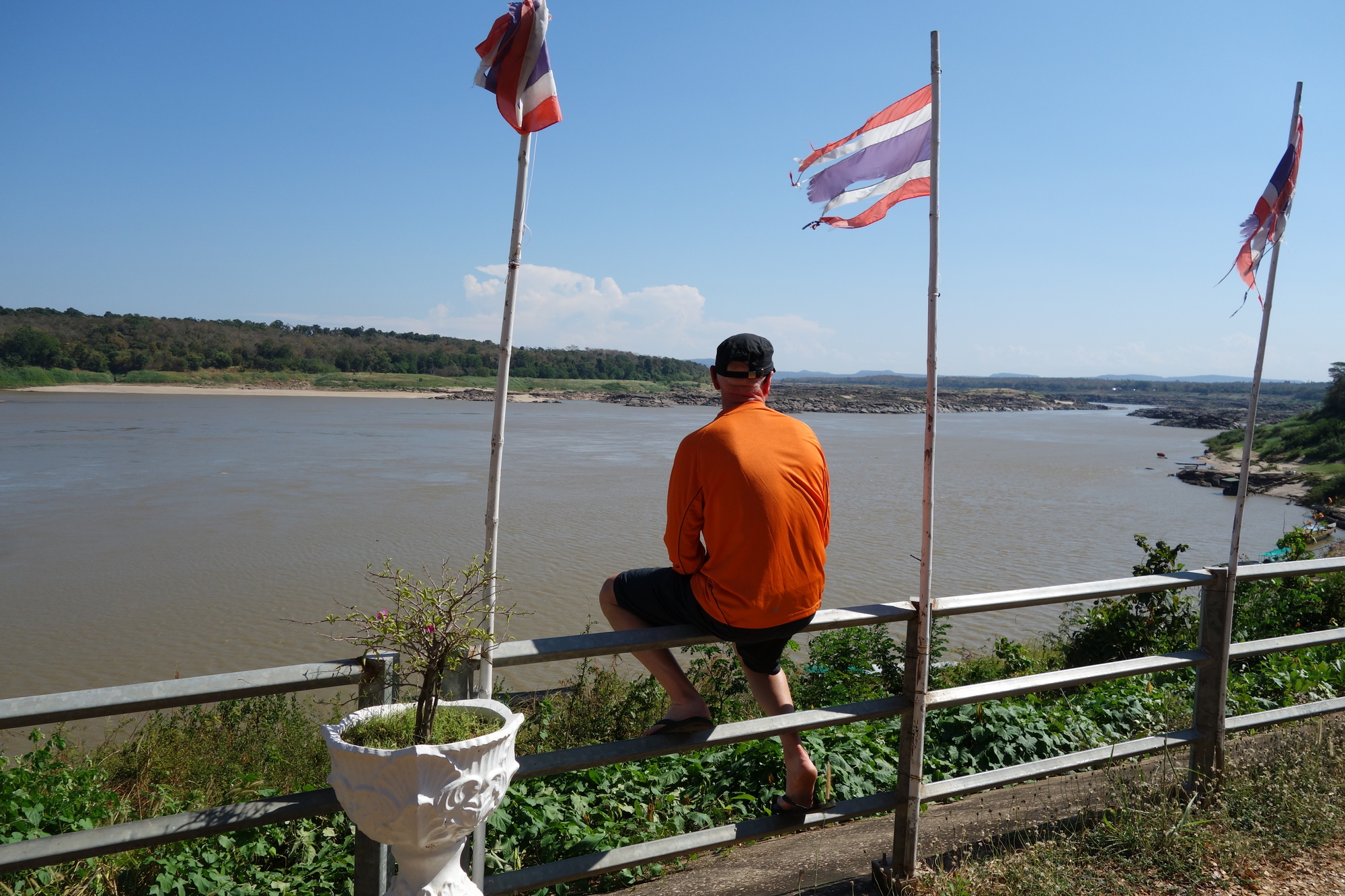 The place I am staying at tonight was always on my must-do list since I came here first in 2012. The problem is to find it. On Hway 2112 there will be just one small blue sign for a left turn to"Hat Salung". In the village itself everything is in Thai script only but the excursion boats have it in Latin script on their roofs saying "Had Salueng". That´s why I am using this particular spelling. I can´t remember how I found the place in 2012 but this time I recognized the turnoff immediately. You come up one of these steep ramps approx. 37 km south of Khemmarat and there is a little village on the "summit". The first sign sends you down to some resort but you continue about 200 m further. As you can see the sign saying 80 km to Khong Chiam there is that little blue sign I was talking about. From here it´s just another 3 km down to the river. If you are looking for it on the internet: Next door to where I am staying (a restaurant with just three rooms in the back) is the Song Khon Resort which is featured on google maps. Why so many words on that place? I hope the last two photos will give you an idea why I admire the place so much.