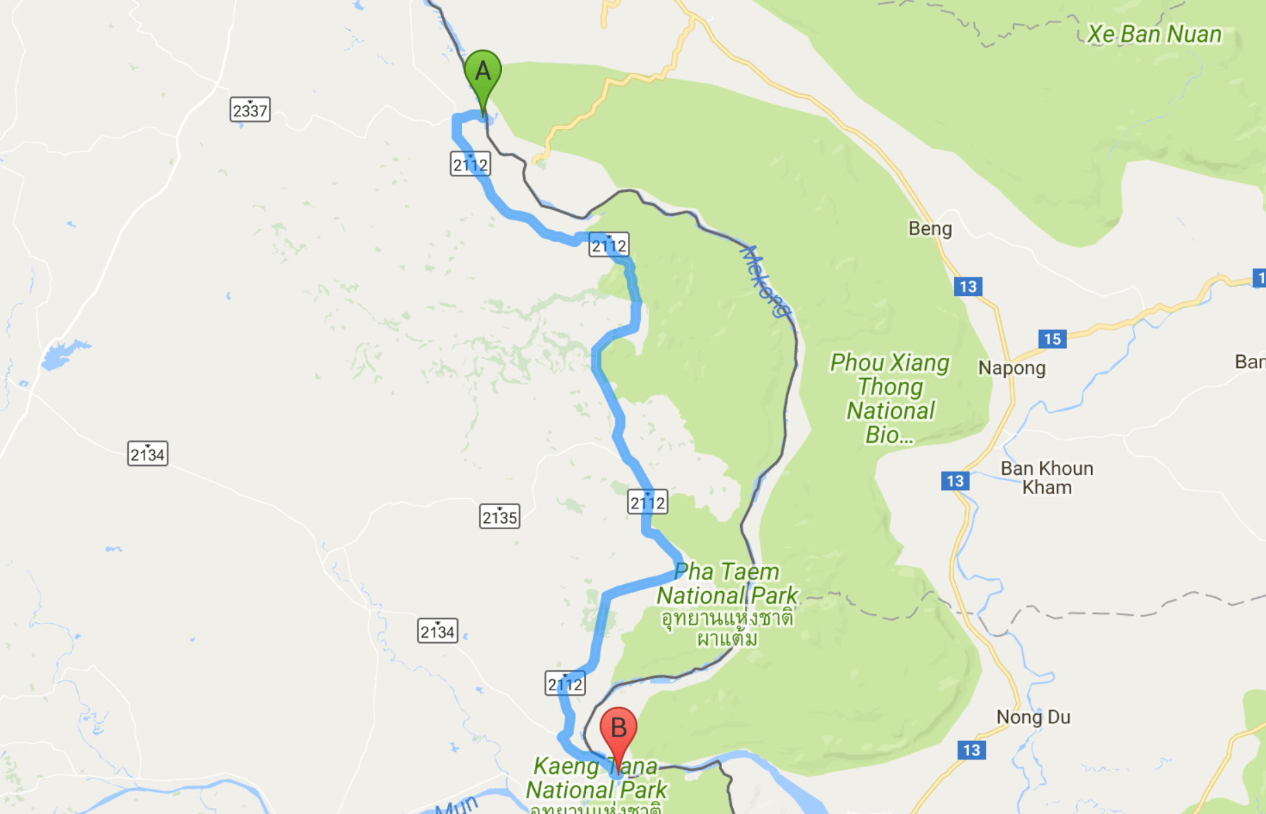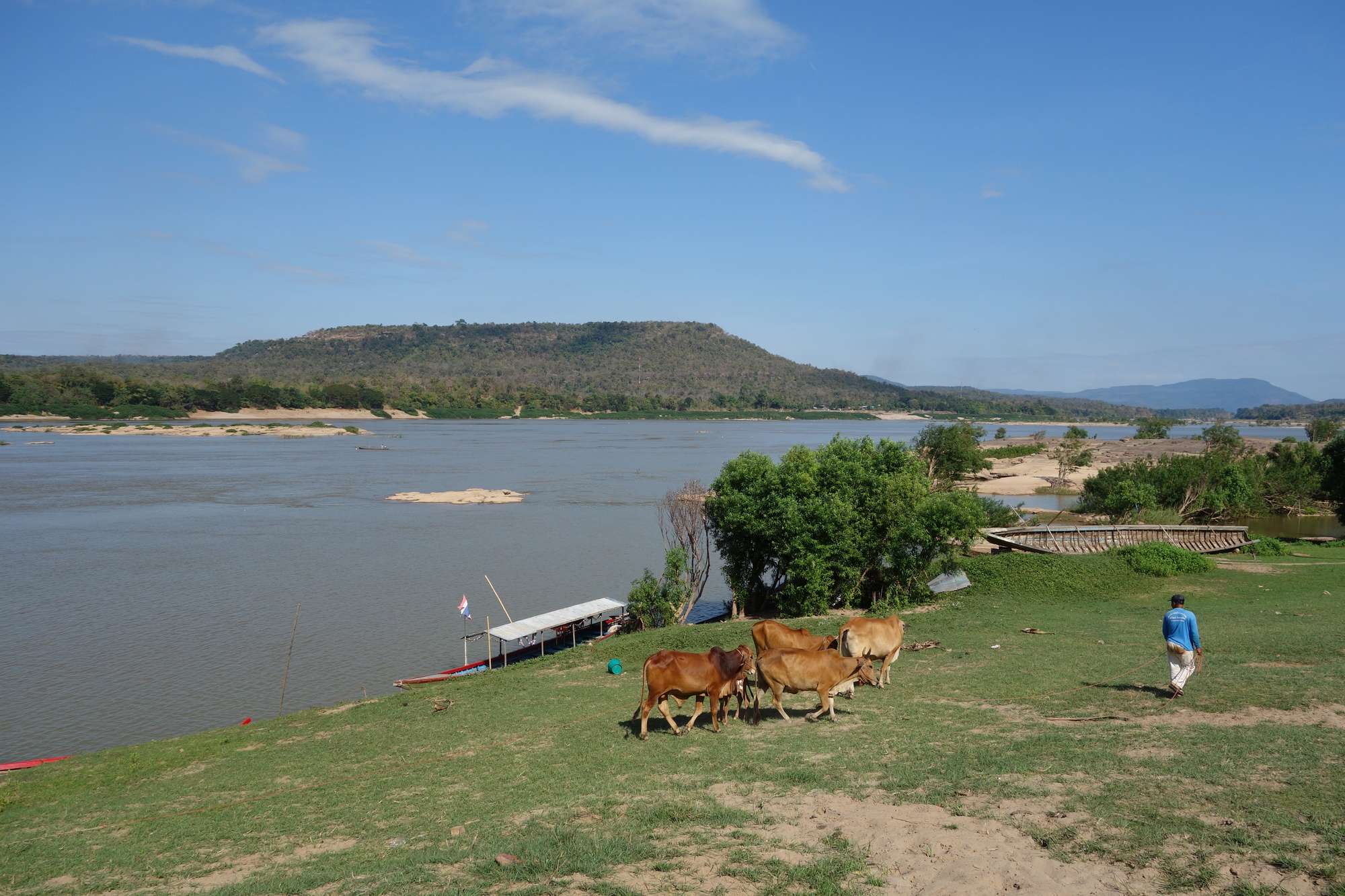 BeforeI forget to tell you about the ride today: Forget it! At least the first 50 km on the 2112 with two challenging uphill sections, several nasty undulations and a lot of that rough surface I showed you yesterday. Different story after summit no. 2. Delightful descent into Khong Chiam but all the same: Mostly unsinspiring bush and you never get to see the river until you get down into Khong Chiam. I am staying at a place I found through booking.com last night. It´s a really nice little hotel in the town center and I find the 350 Baht for my room almost ridiculous. But as I am on the receiving end I happily take it and might even stay a second night. Will only make that decision in the morning though as I am at the same time eager to get into Laos and ride down to the 4000 islands on the western bank of the river as suggested by my friends Andrea and Bruce. I have been to the islands at least four times but that new route makes me very curious.
