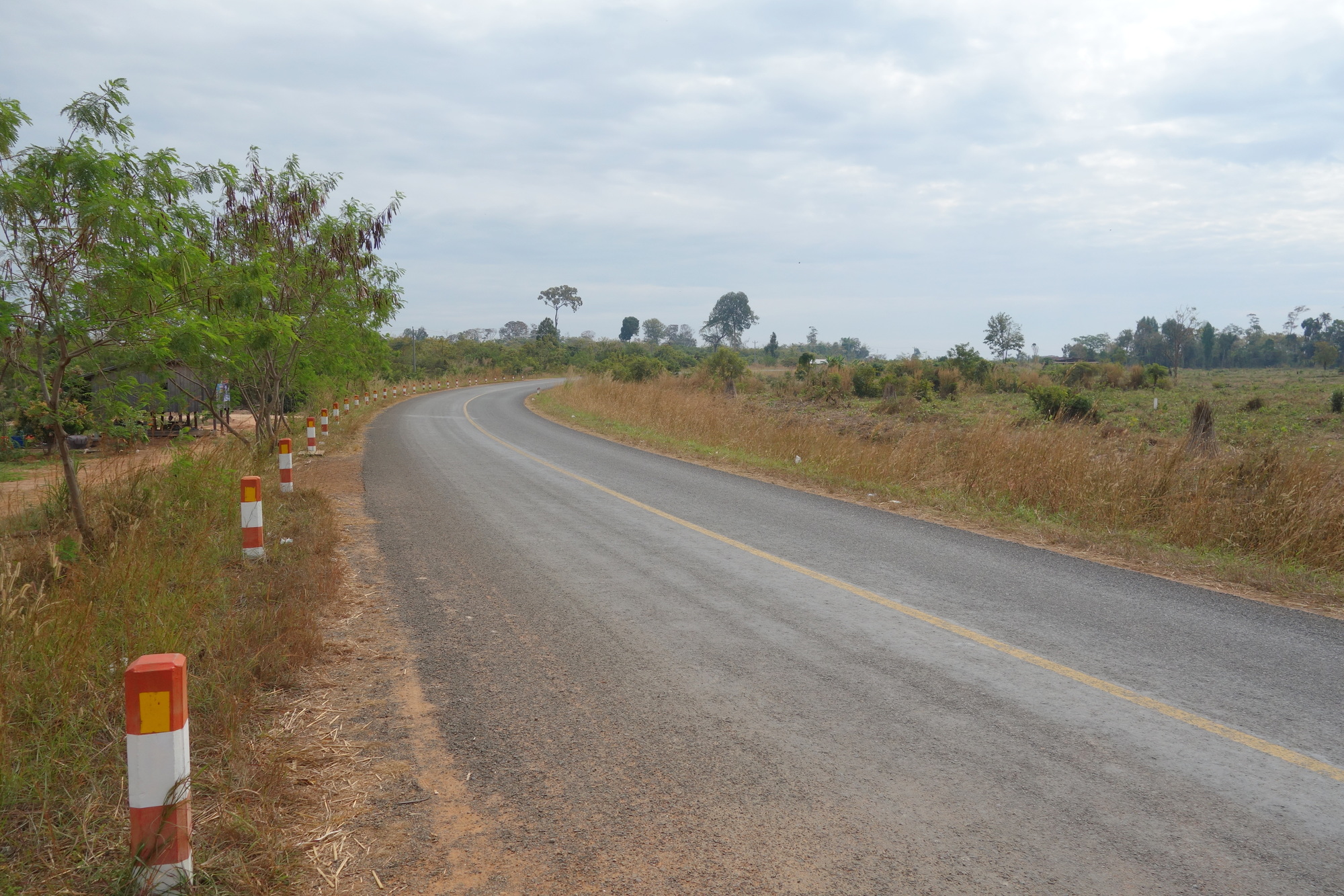 Highway 9 as it looked all day. No shoulder but no problems due to little traffic. I felt there were 3 or 4 waves of minibuses full of Cambodian people, the rest of the ride was rather quiet