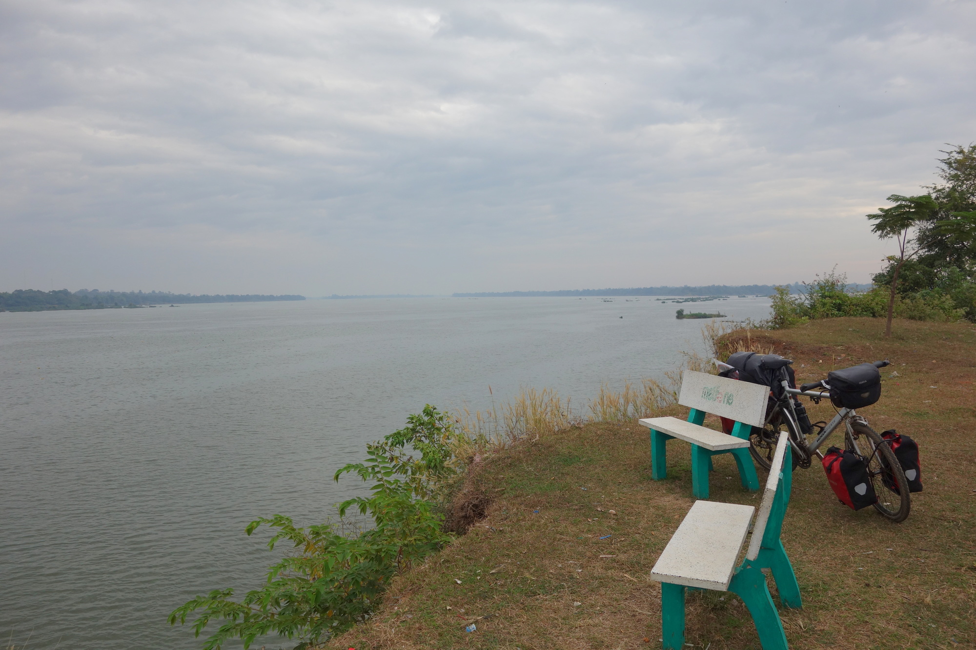 I arrived here in Preah Vihear City yesterday fairly late in the afternoon after a huge 7 hours in the saddle. Not what I was planning to do but you will learn about that later. Once again my day in Stung Treng started much, much earlier than I was hoping for. At 2 am a large group of Cambodians entered the guesthouse and that is one thing you simply have to accept all over South East Asia. If they wish to talk, they talk loud regardless of the time and whether somebody else might be asleep. Fortunately they all were to bed swiftly and I got back to sleep. Only to be woken up by what I thought was somebody tapping my shoulder. When I opened my eyes I could see a young gecko trying to hold on to a huge insect on the pillow right next to my head. I assume they dropped down from the ceiling. I wiped both off with a vengeance and the gecko disappeared unhurt while the insect seemed to be happy in my presence and stayed. None of both would have done any harm to me but I still got such a fright that my night was over at 5 am. At that time I didn´t know this would come to my advantage later in the day.