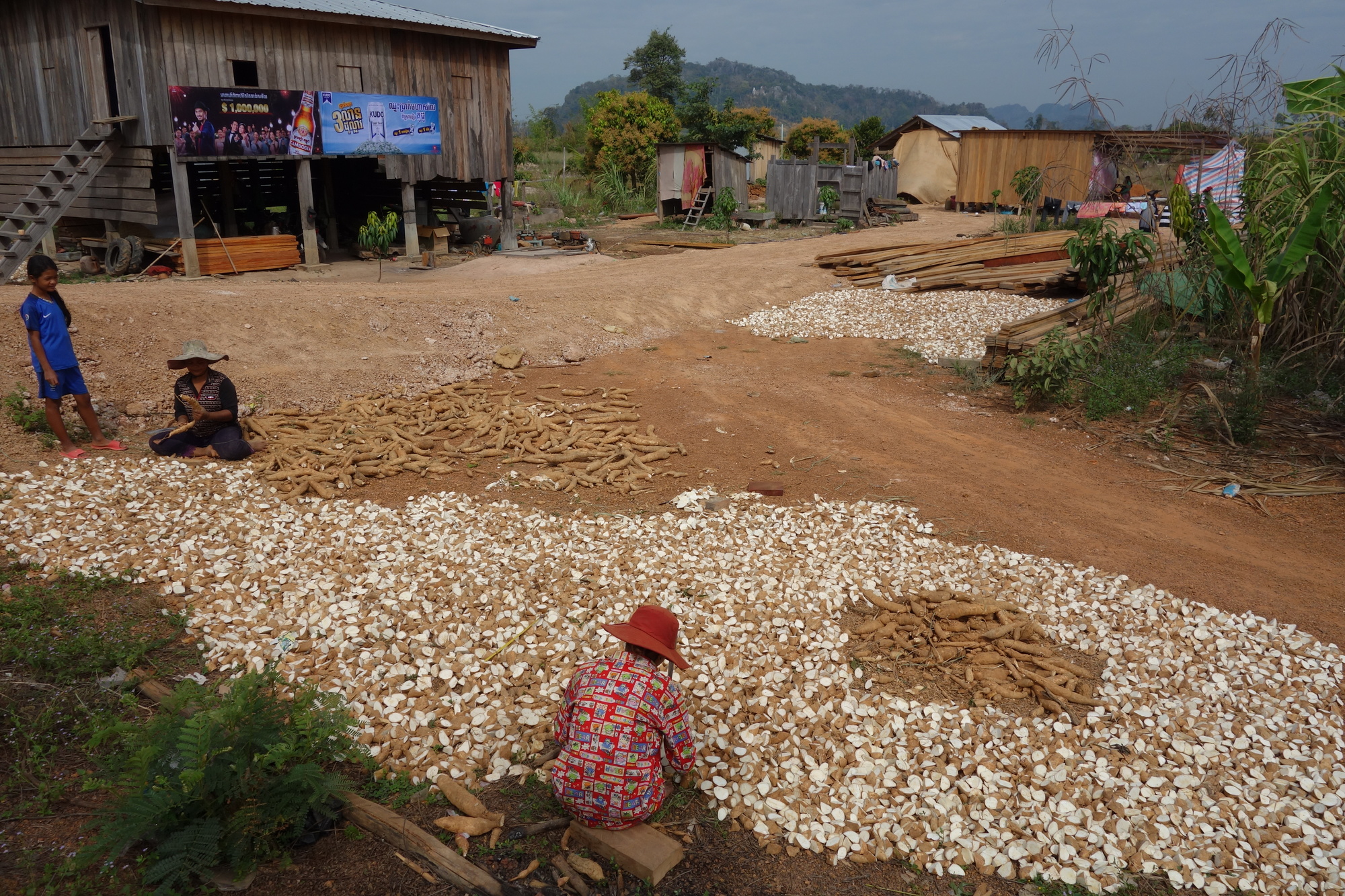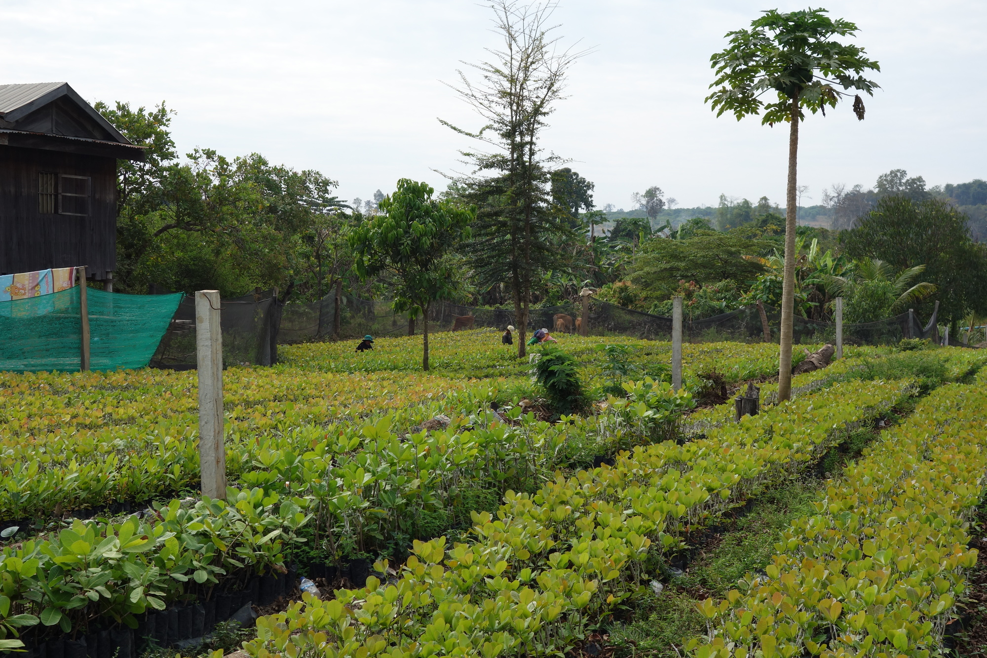 I was determined to spend the night in Chhaeb, just 88 km down Highway 9 for one sole reason: There was to my knowledge the only guesthouse between Stung Treng and Preah Vihear City (PVC). I took it very easy to get there and was pleasantly surprised by the good cycling conditions: Excellent surface all the way through, mostly overcast without any threat of rain, wind neutral to slightly supportive, flat terrain and far more visual attraction than there had been between the Lao border and Stung Treng. Still nothing really exciting but plenty of agricultural activities around the villages with some hills in the background. Quite nice and I had several drink stops plus a half an hour conversation with Richard from Austria who is on his way to Hanoi.