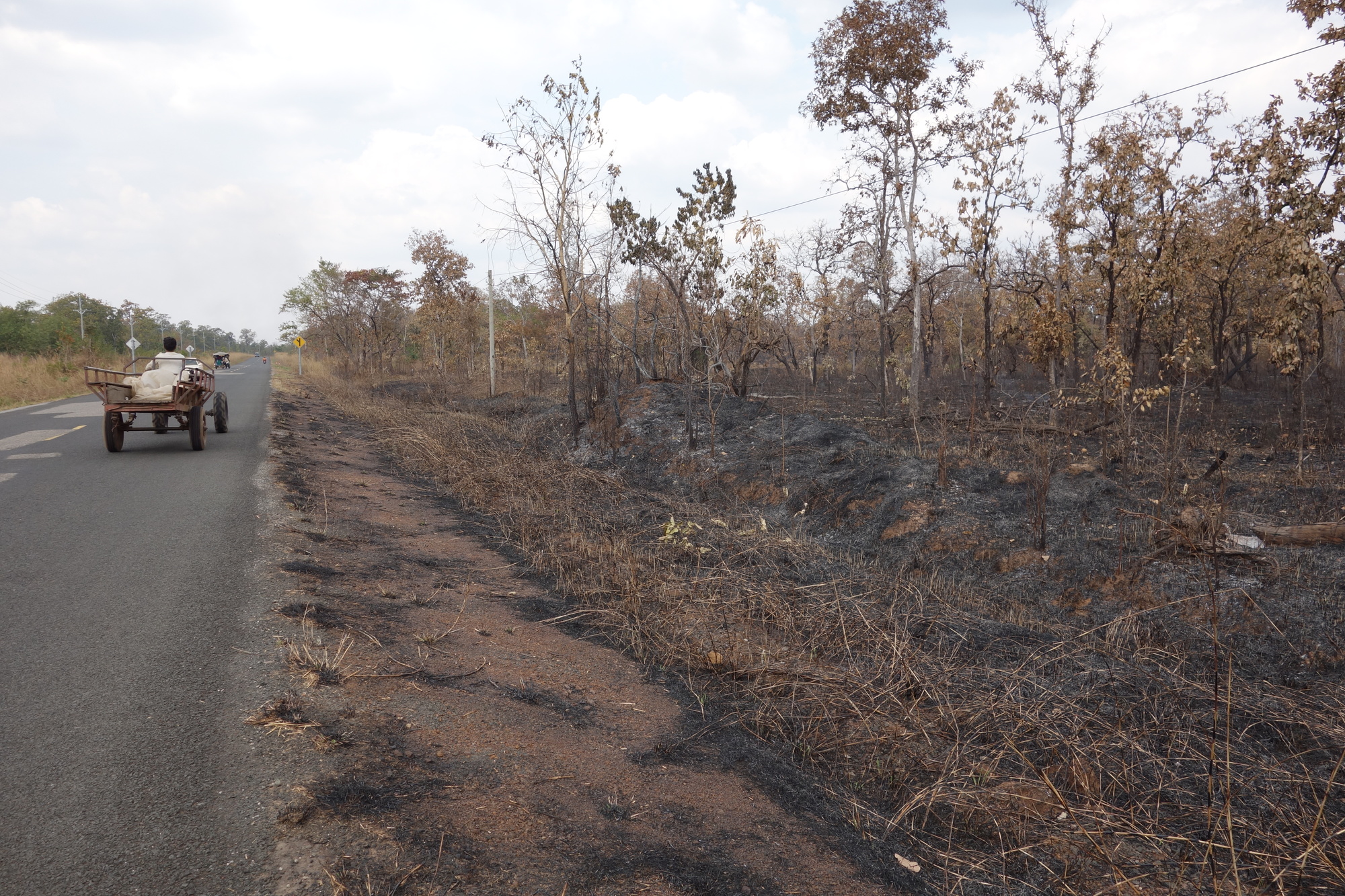 From here the scenery did unfortunately deteriorate to the same lonely monotony like on my first day in Cambodia. At least the road was much better, apart from a 3 km section approx. 50 km from my destination. Heading north meant of course going against the wind which I didn´t mind initially as it gave some relief from the scorching heat. Later into the ride I ran out of steam though, probably because of the heat, probably because of the strong headwind, very likely because of the evil combination of both.