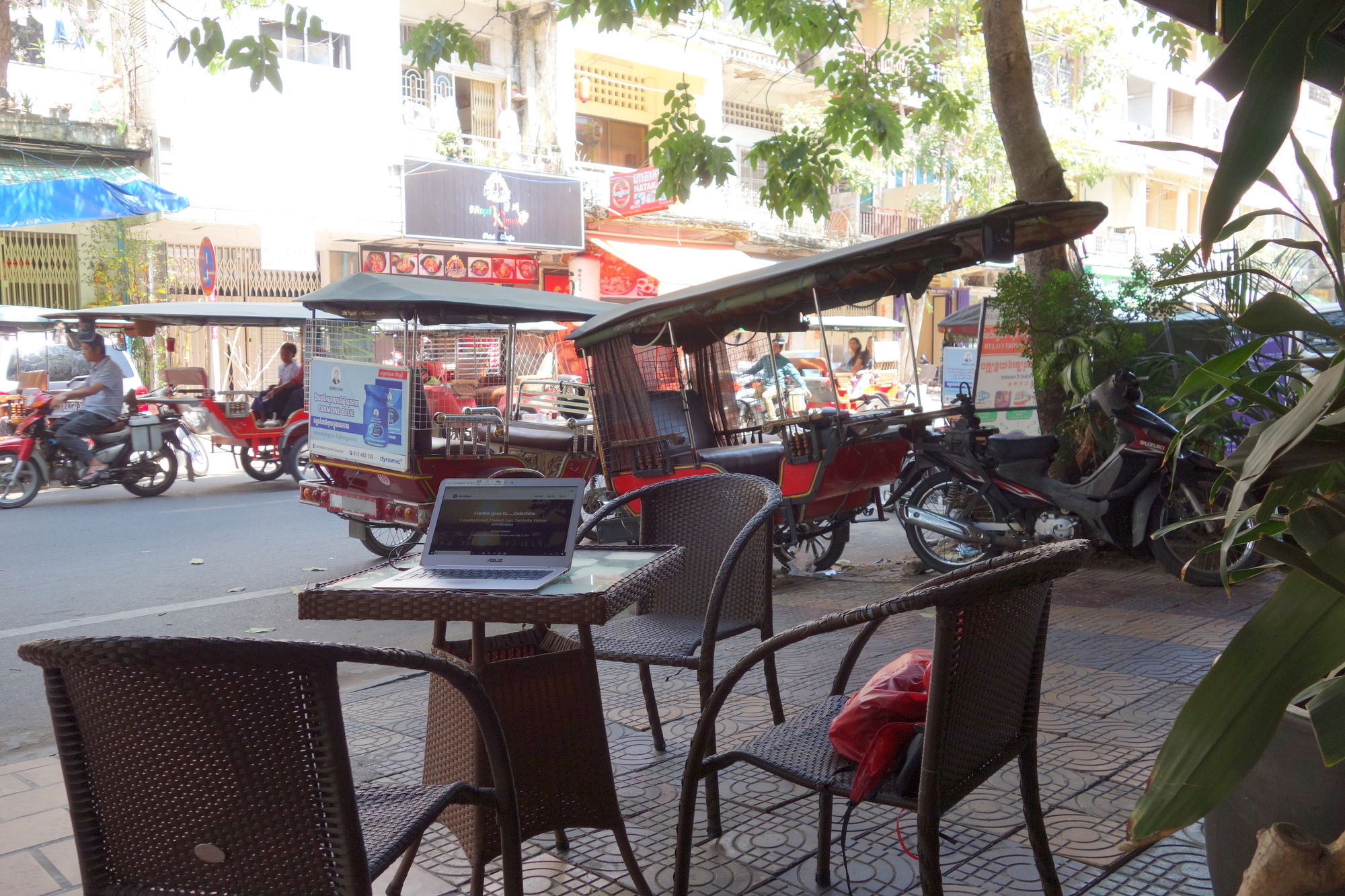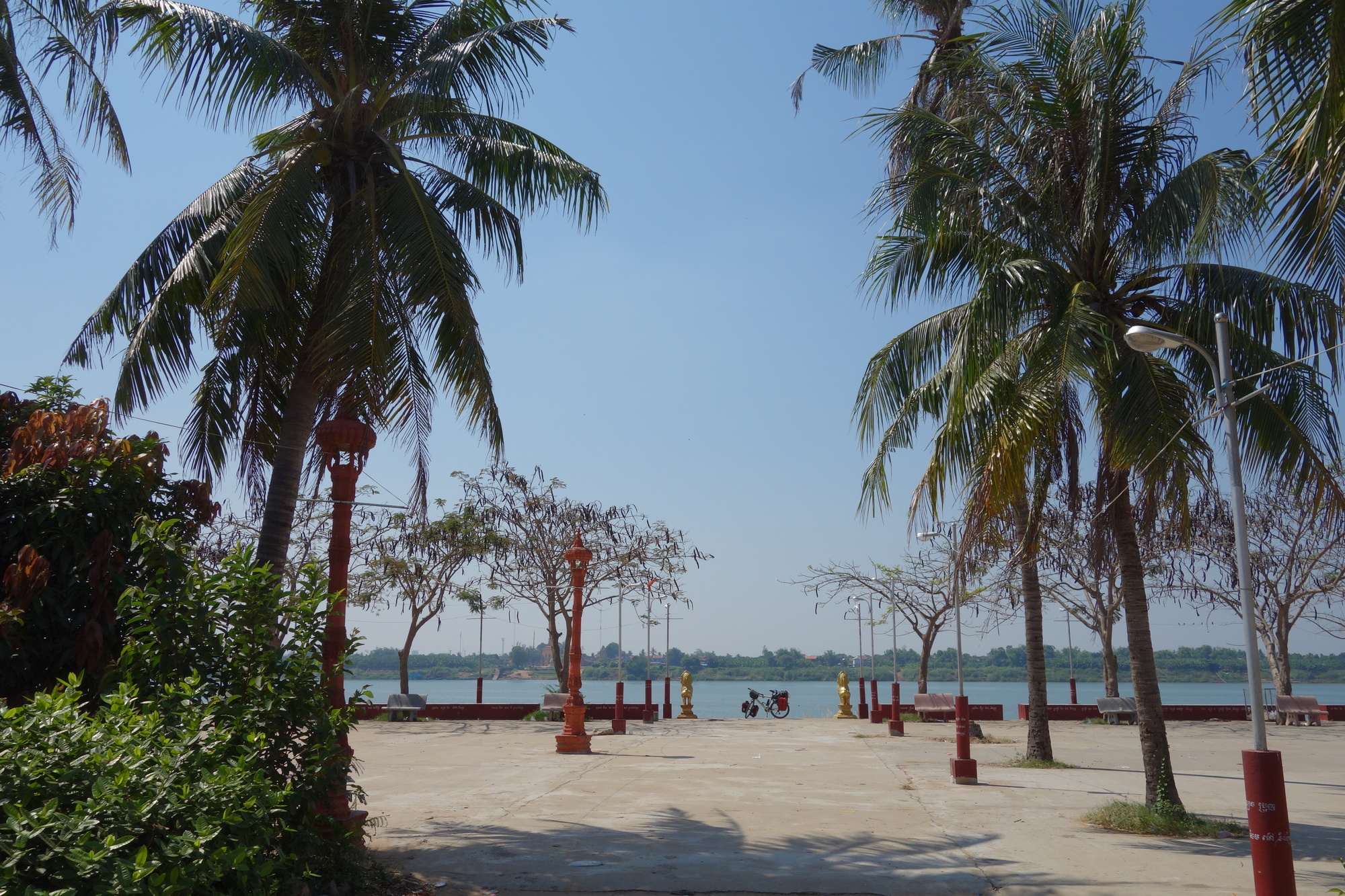 Once arrived on the other side I turned right and found myself on the pedestrians/cyclists-only promenade. You can go all the way up to the northern end of the promenade entirely free of any motorized traffic. I sat down up there for a few minutes thinking how to approach the coming days. The Thai visa issue was now the decisive factor for the length of my stay. That´s why I decided to clarify this issue first and cycled diagonally through townbefore looking for a place to stay. My target was the Lucky Lucky Motorcycles and Services shop, highly recommended on the net for visa issues. The bad news: The owner of the shop told me there is no chance for him to get that visa in less than 3 days. The good news: it will only be 50 US$, less than I thought it would be. That´s why I decided to stay for 4 nights and enjoy the great food and atmosphere of the city which has, as Kampong Cham, really improved over the years.