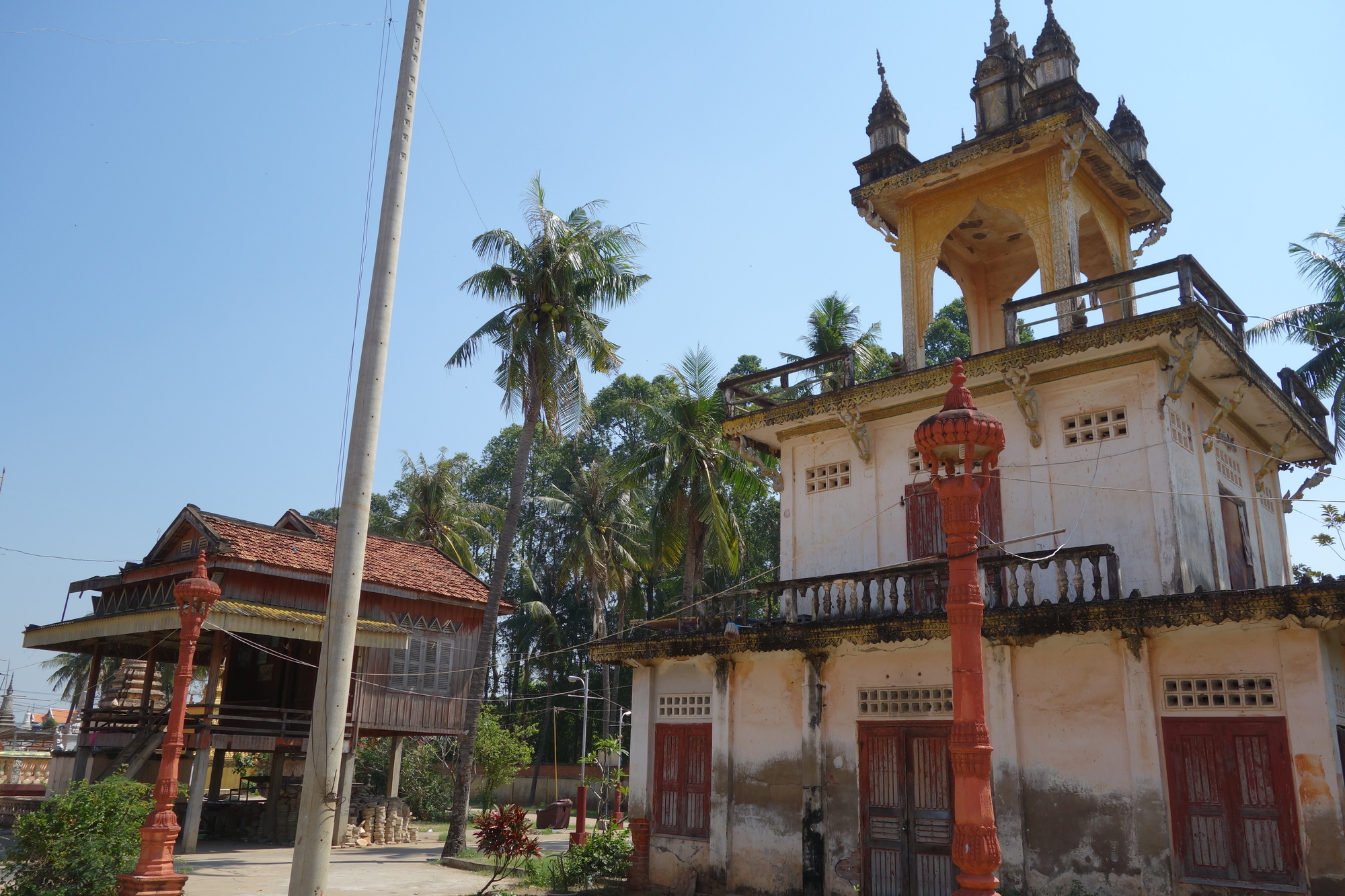 I guess the way my last two days have developed is symptomatical why I love cyclo-touring in South East Asia so much. The day that was supposed to become a lovely ride to a new destination turned out to be Apocalypse Now- Vol. 2018; the perforced amendment of my route into Phnom Penh turned out to be one of the nicest rides you can have in Cambodia. When I decided to ride into the capital yesterday I was convinced this would become a tough a day. I have come in from the North on Highways 5 and 6 twice and it always were very challenging last kilometers. Today - completely the opposite! Leaving Pea Reang in the morning Highway 8 continued with that great shoulder and the easterly wind was right on my back. Glorious first 30 km to the roundabout just before the bridge over the Mekong. There I turned left onto the 380 and that was definitely the best choice I could have made. Only local traffic and plenty of sightseeing all the 26 km down to the ferry in Akreiy Ksatr. Delightful cycling!