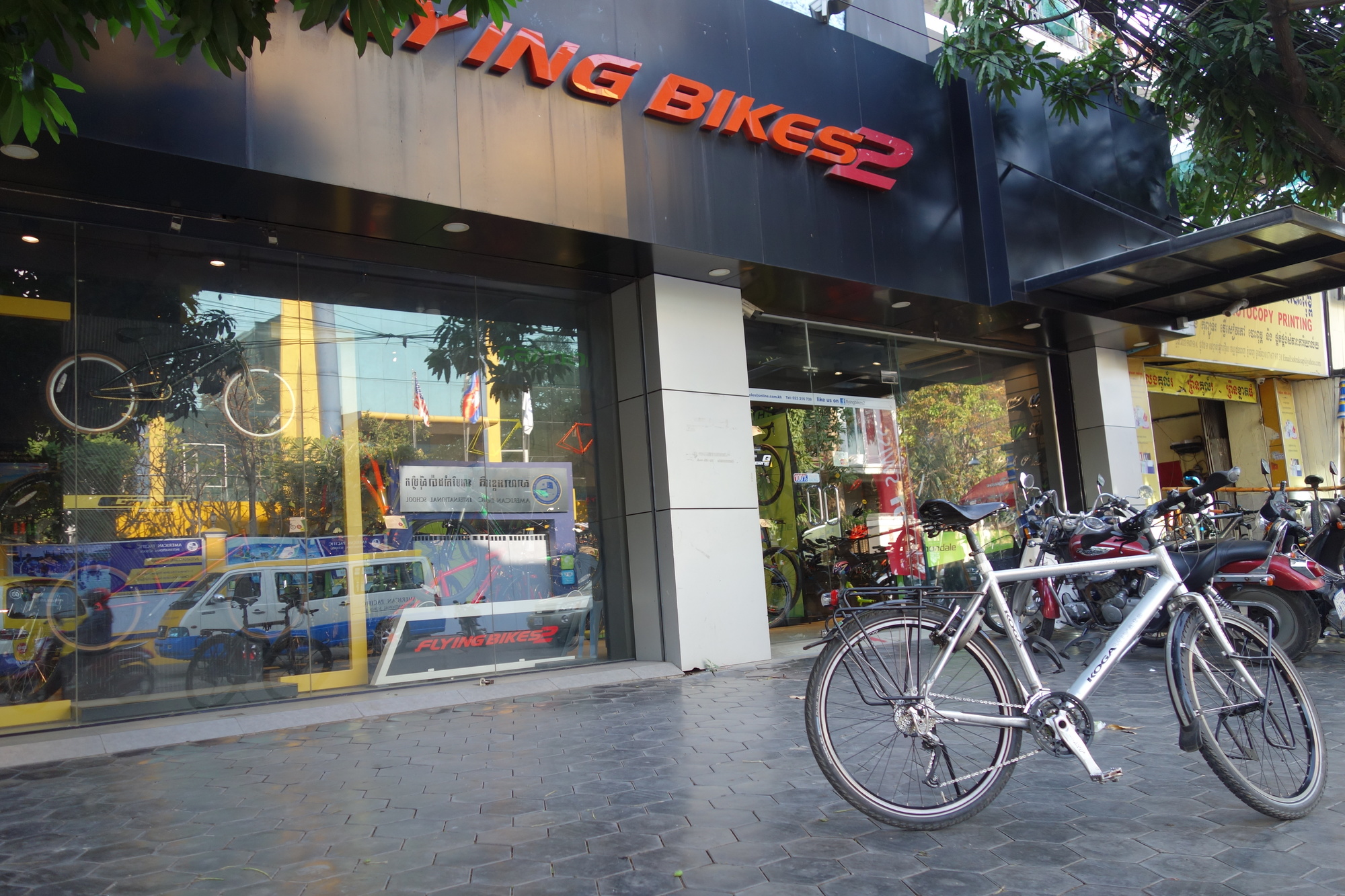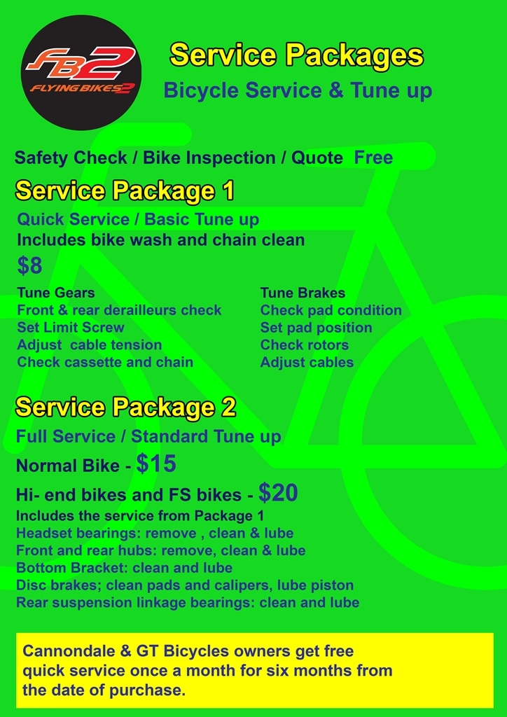 -Bike maintenance: Let me start with one of the highlights of my days here and sing the song of joy on the Flying Bikes 2 shop. Obviously having my bike serviced wasn´t planned as I didn´t even know I was coming. I searched the net and quickly came down to the above mentioned shop, just 10 minutes away from my guesthouse. I rode over last night to see whether I could get an appointment and I could indeed indeed. Straight away. They kept the Koga and told me to come back at 5 pm today to pick it up . In return I gave them authority to replace any parts they deemed necessary. "How much will it be?" - was my obvious question and the very pleasing answer: "The Service Package 2 costs 15 US$ plus parts." Have a look at their "menu" below to understand how much service you get for that money! When I picked the Koga up I was even more delighted as I don´t think it has ever been in better hands. I particularly appreciate they fixed the front wheel bearings -which have bothered me ever since I started this ride- and also the chain looks like new without replacement. Would have been so easy to sell me some parts...... This means a lot to me as I already mentioned before: My bike is not just a machine carrying my gear but my travel companion. So after all the recent maltreatment it really deserved that wellness treatment.