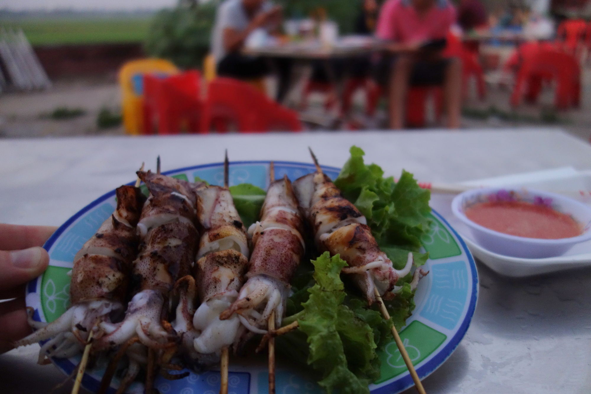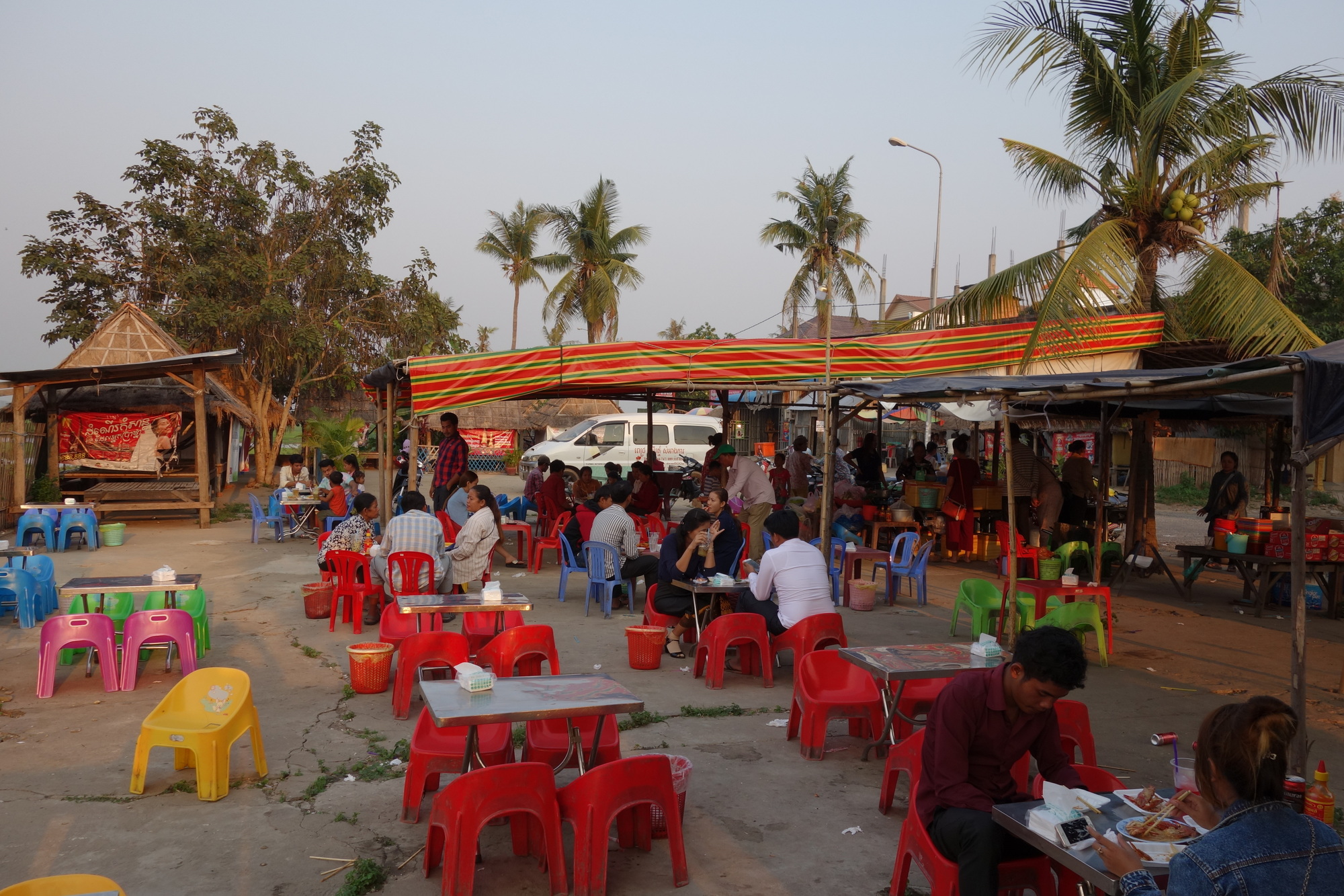 I had to turn left onto the Preah Norodom Boulevard, later called Hway 2, only a couple of hundred meters from the restaurant. You can stay on the #2 all the way through but I followed the google maps advice and took the shortcut along the Hun Sen Blvd. Not nice scenerywise but a wide dual carriageway without any cross traffic. Once back on Hway 2 that nasty middle section I mentioned above commenced. Very dense traffic, very poor surface, very dusty, - the usual Cambodian highway nuisance. Fortunately the further south I got the more all relevant conditions improved. I would even call the last 20 km into Takeo pleasant. And the final impressions are the lasting ones, aren´t they? So not a bad day overall and Takeo (also called Krong Doun Kaev) is a nice place to me. Funny setup with some sort of town center around a dried out pond but a real lake a bit further north with guesthouses aplenty and very, very good seafood stalls. You will see what I mean further down. I am staying in the Nita Guesthouse in a decent fan room for 5 bucks.