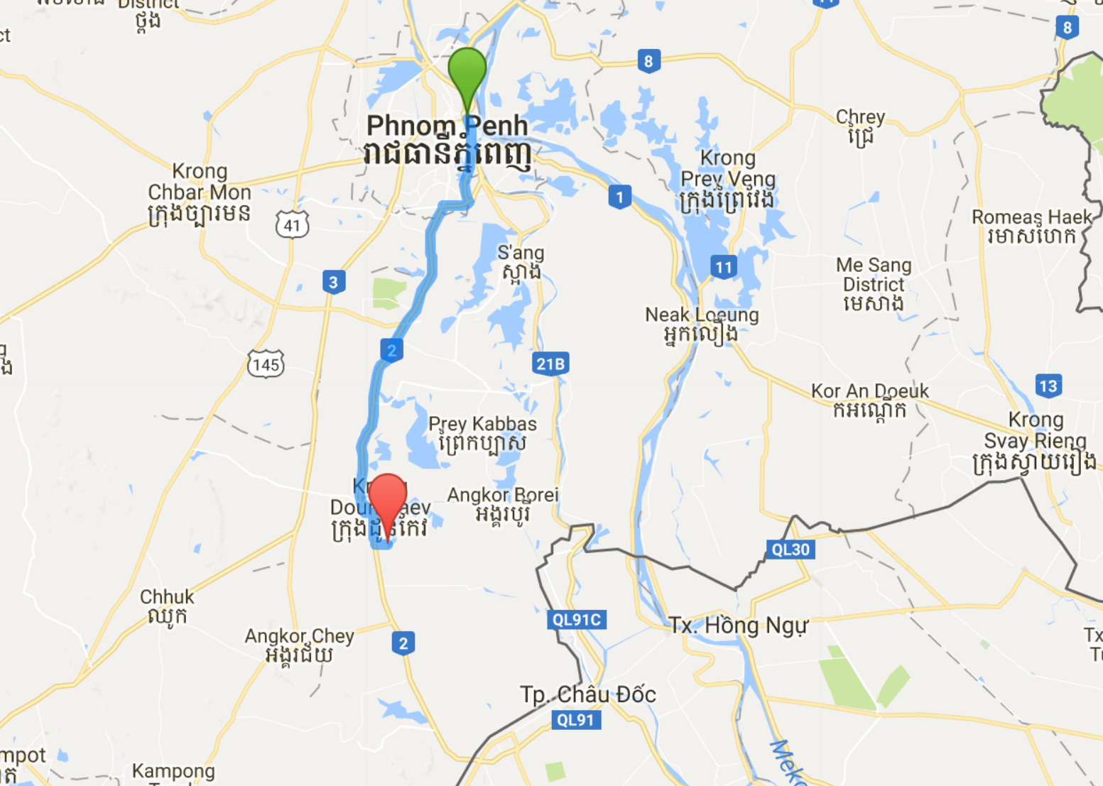 My last errand was run last night by picking up my Thai visa at the Lucky Lucky Services. Worked out perfectly well - only to be recommended for any sort of visa issues. Although I had a really good time in Phnom Penh I was ready to move on: Me myself refreshed, the bike in perfect shape again and Vietnam is calling. A country I have been to before but only in the North and never on a bicycle.