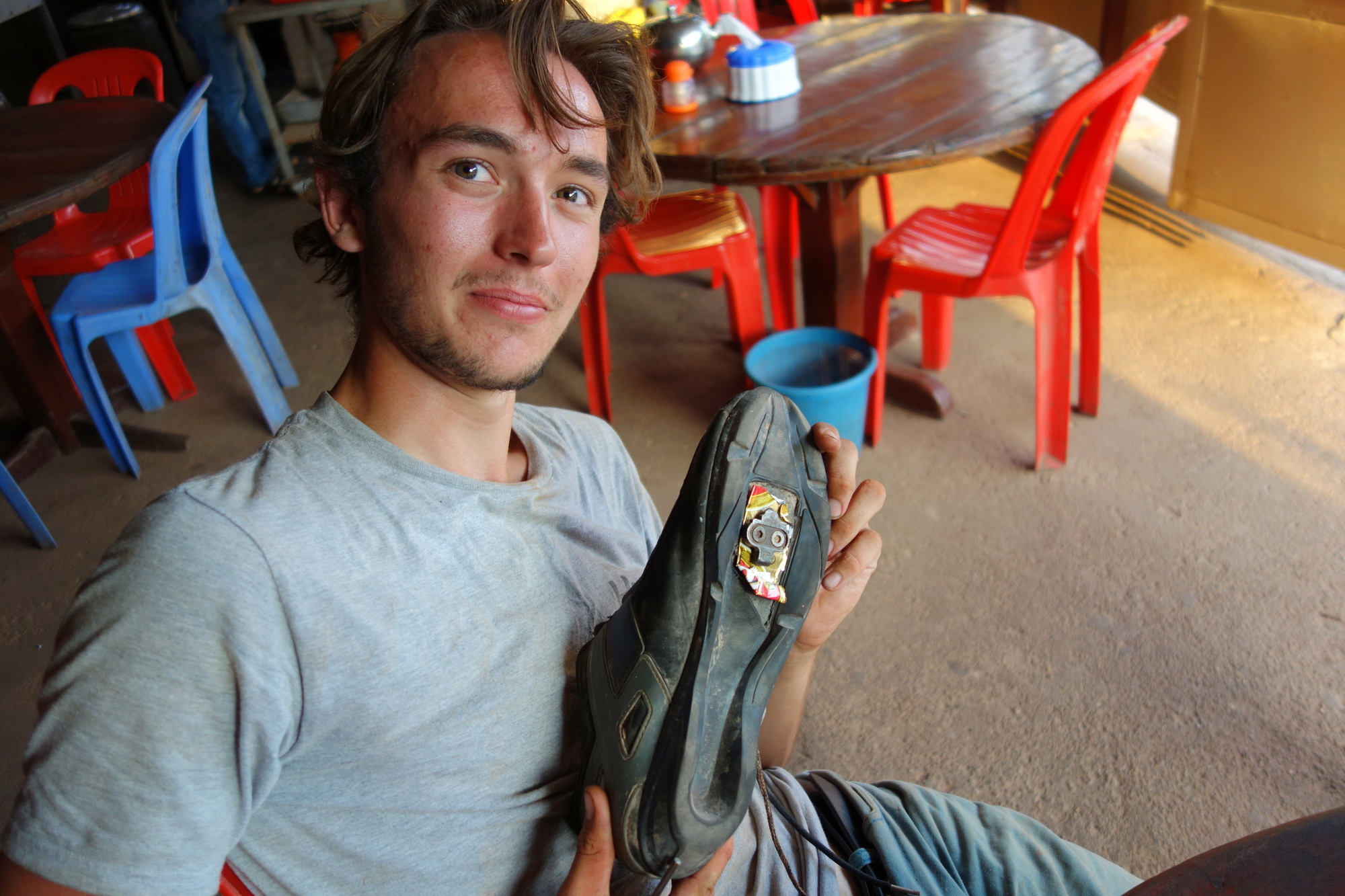 Easy last 13 km into Srae Ambel where I directly headed for the 168 Guesthouse where I already stayed in 2012. I like this place! An old wooden building with basic but clean rooms for 5 US$. The same family runs the restaurant directly opposite as well and while I was sitting with my first birthday beer I couldn´t believe my eyes! A young man on a fully loaded bicycle stopped in front of the guesthouse and when he took his cycle boots off before being lead the rooms I knew we were going to get on well. Milan from Berlin is on a gap year before he commences his studies and cycled down here from Hanoi. My very first impression turned out to be correct - an extremely plaesant young man and we very quickly decided to do the next two days towards the Thai border together. Once again a nice end to a rather unplesant day of cycling in Cambodia.