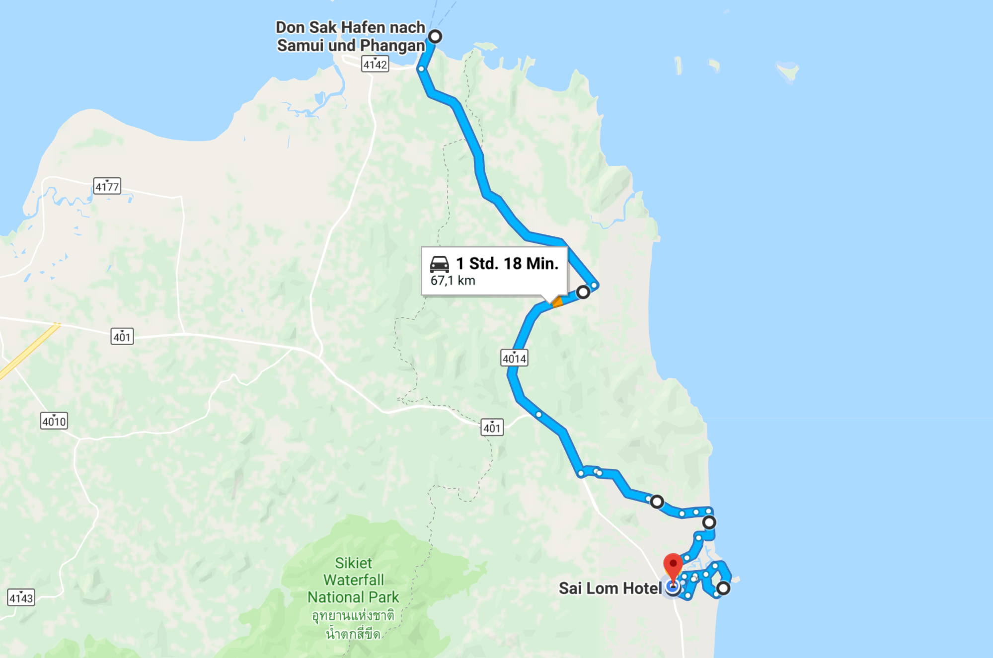 Finally on the road again! I thoroughly enjoyed those eight nights on Samui, in particular the combination of meeting very good, old friends and exciting new people. I didn´t do anything else but socialising and walking down from my pretty bungalow to the beach several times a day. After 4 or 5 days I really noticed how I was winding down, a feeling that any 3-week-annual-leave visitor would be after but when riding your bike for a longish time, this beach-lethargy may become "dangerous" as well. Sounds weird, I know, but I believe you have to keep up some sort of momentum and mindset to enjoy packing your panniers every single morning and then pushing the bike for 5 or 6 hours regardless of the conditions out there.