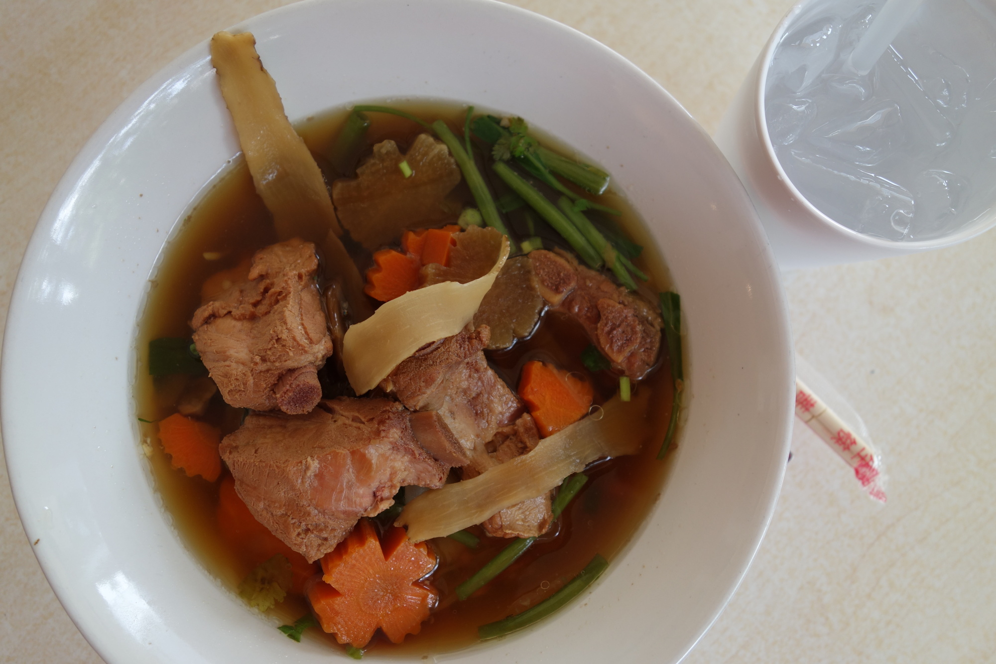 And conditions is the right keyword to move over to today´s ride. Lovely first 14 km to the ferry terminal despite that very nasty steep hill approaching Nathon. The ferry ride itself has always been a pleasure and so it was today. Perfect smooth sea and the prospect of a nice lunch at the little restaurant at the Don Sak terminal. Honestly, the food is excellent (that´s why I am posting the 48th noodle soup photo below) and the travelling buzz all around you makes for a special atmosphere.