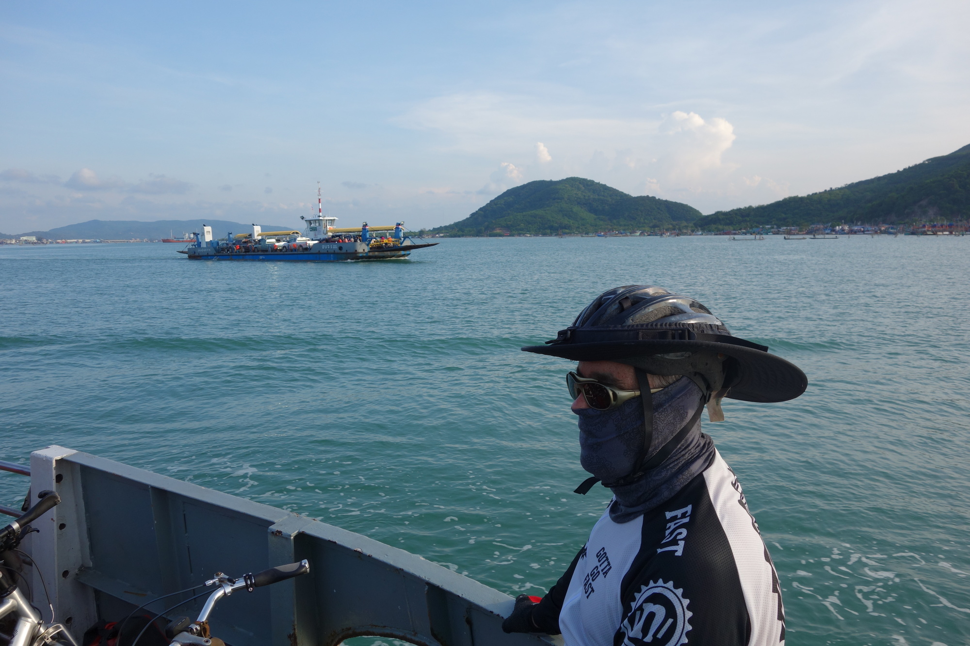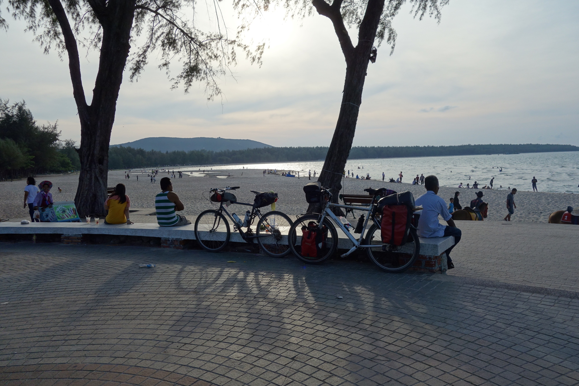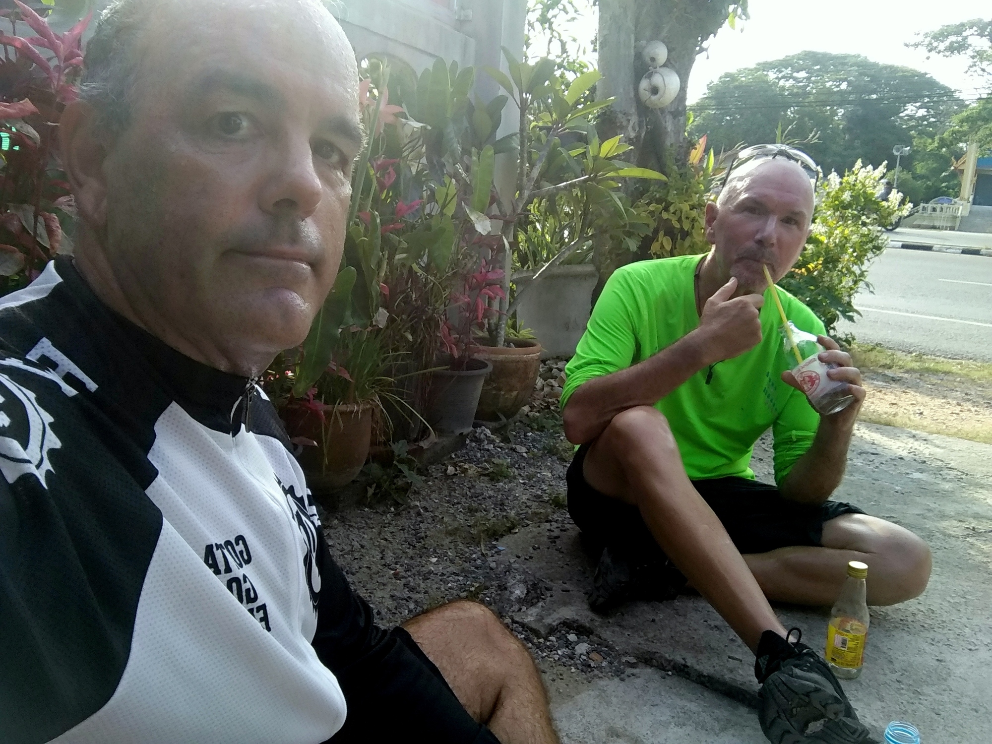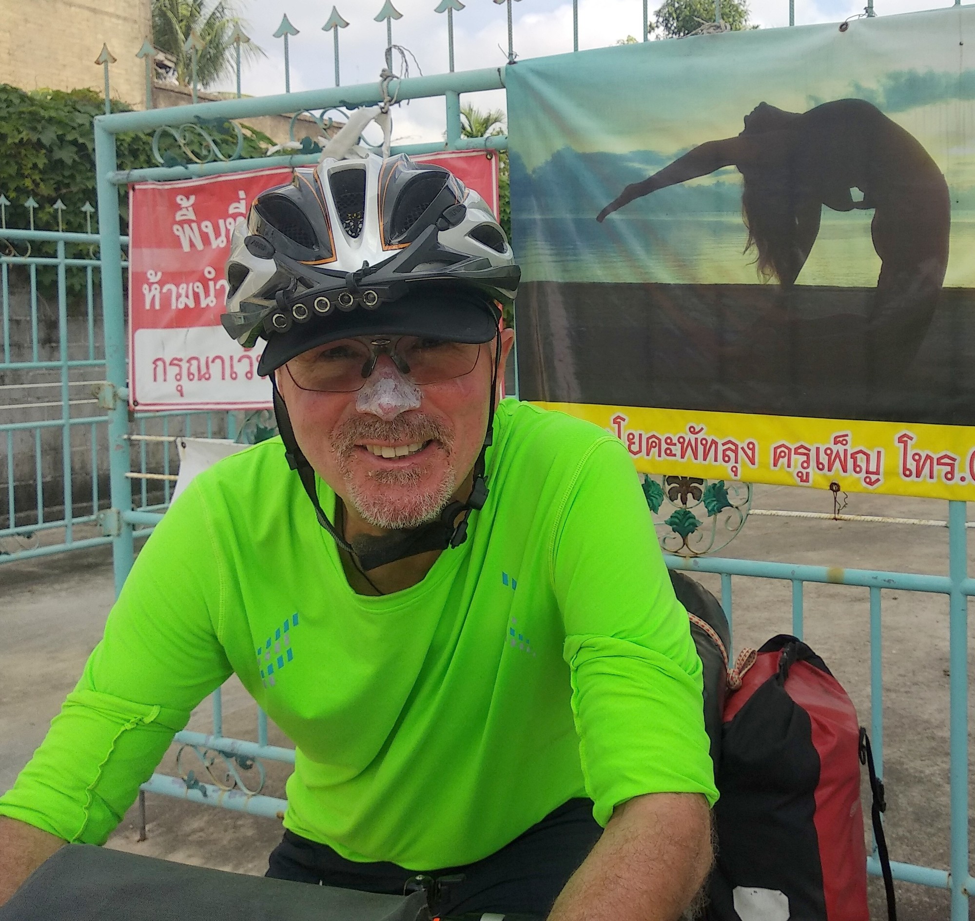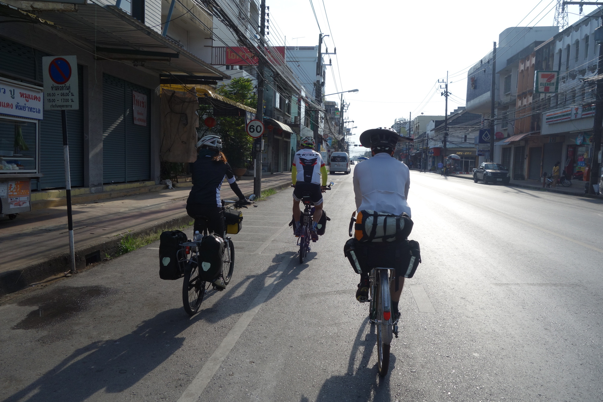 Andrew had to realize he hasn´t fully recovered from his infection yet and was sensible enough to call it a day after a third of todays distance. He rode a few km inland and took a train to Hat Yai where we will reunite tomorrow. Later on the rest of us agreed to split up into three groups, all rolling along at their individual pace and meet again once in Songkhla. Bob and I got back together about 30 km from Songkhla and managed to get into town just before sunset. We then basically picked the first accommodation we came along which wasn´t the best choice but alright for just one night at 600 B. Some sort of apartment block where predominantly oil workers take lodging for longer terms. It´s called Nopakao Mansion but neither Bob nor I would recommend it.