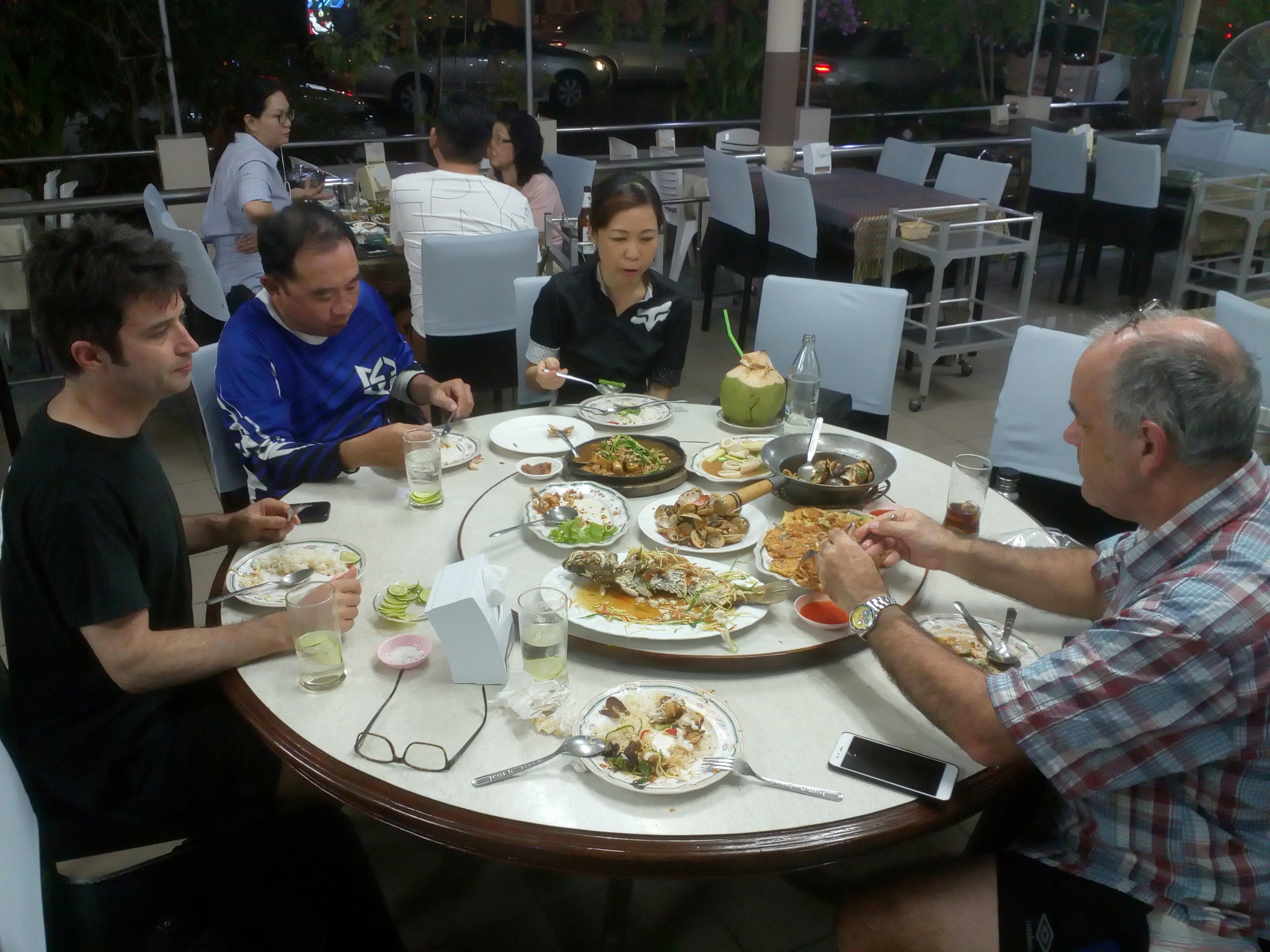 We are staying in three different hotels: Andrew and myself in the worn but clean Tanaphat Hatyai Hotel (485 B, agoda - make sure you ask for a room with the new ac devices!); Bob in the Grand Pink Hotel and Coleen/Chris booked themselves into the brand new V. Ocean Palace at 620 B. They really enjoyed Songkhla and their hotel so decided to have their rest day up there and will be arriving here in Hat Yai this afternoon for a last dinner with the full group.