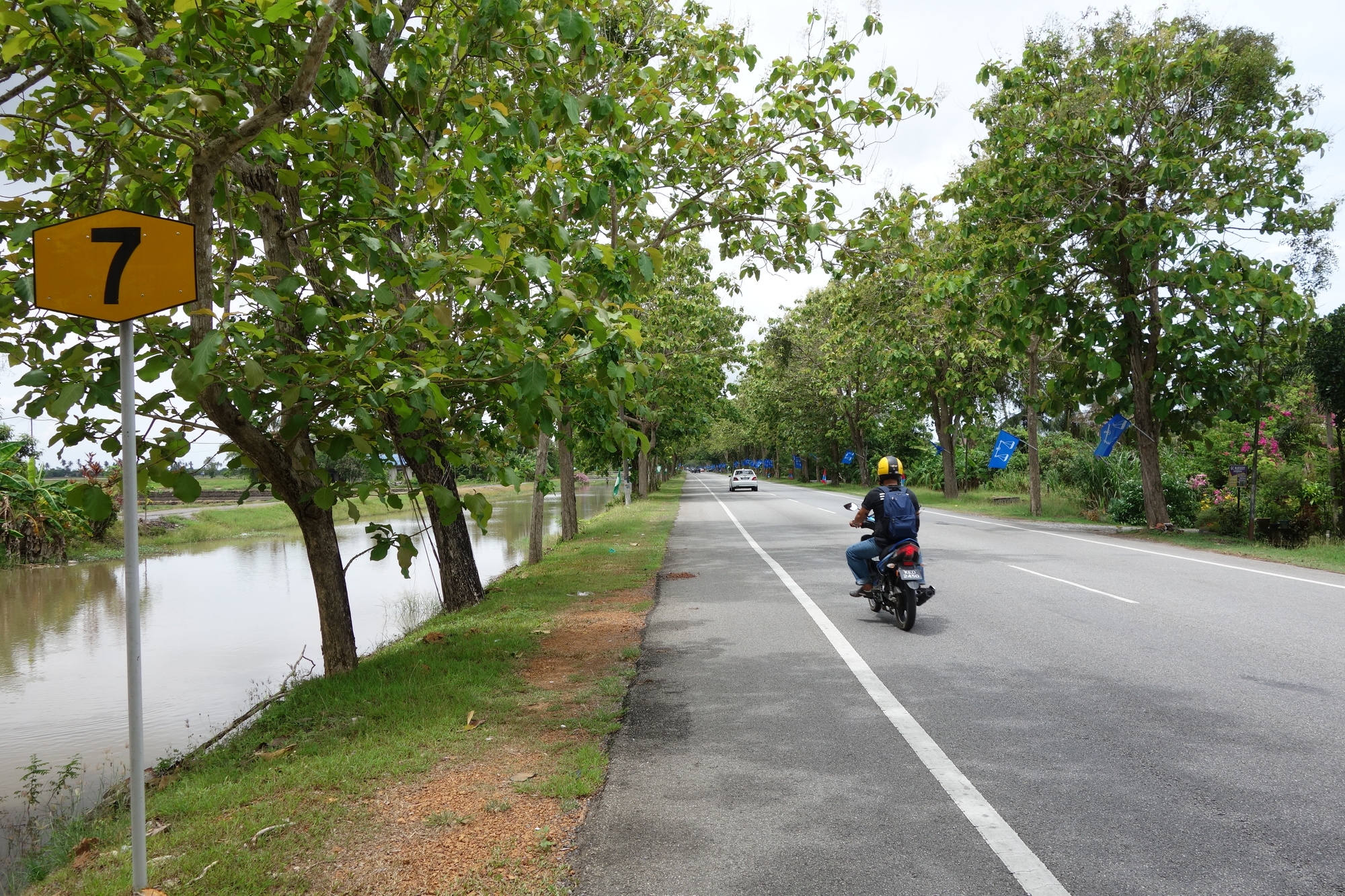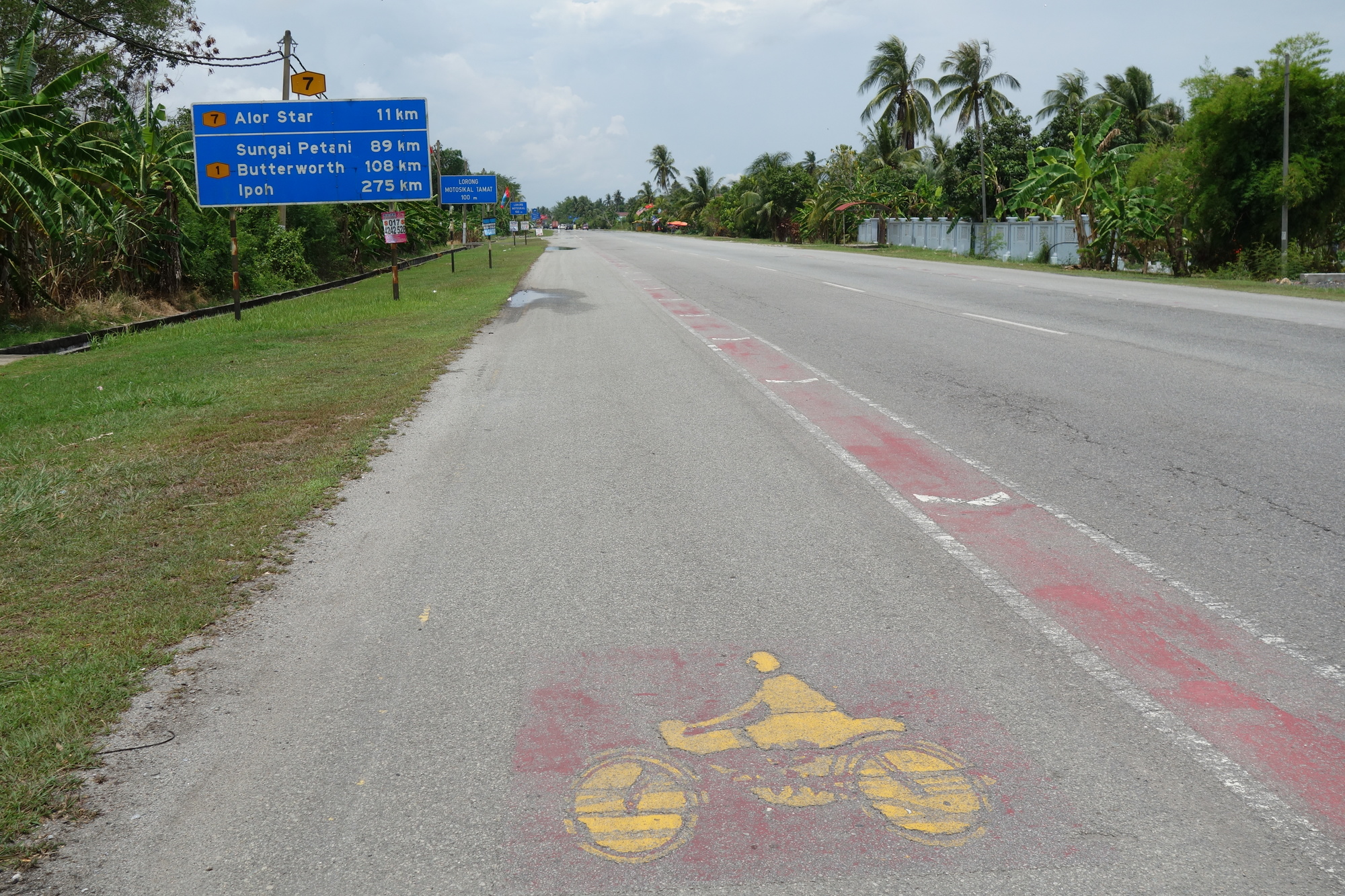 It was a bit cooler than it had been before yesterdays front moved in but the sun was out and the wind in full support again. Ideal conditions and despite the wound related pain I thoroughly enjoyed my ride today. Even the last few km on Hay 7 were fine as there is adecent shoulder and attractive flora. Both will not be found further down along that Malaysian west coast. Certainly the best part of it.