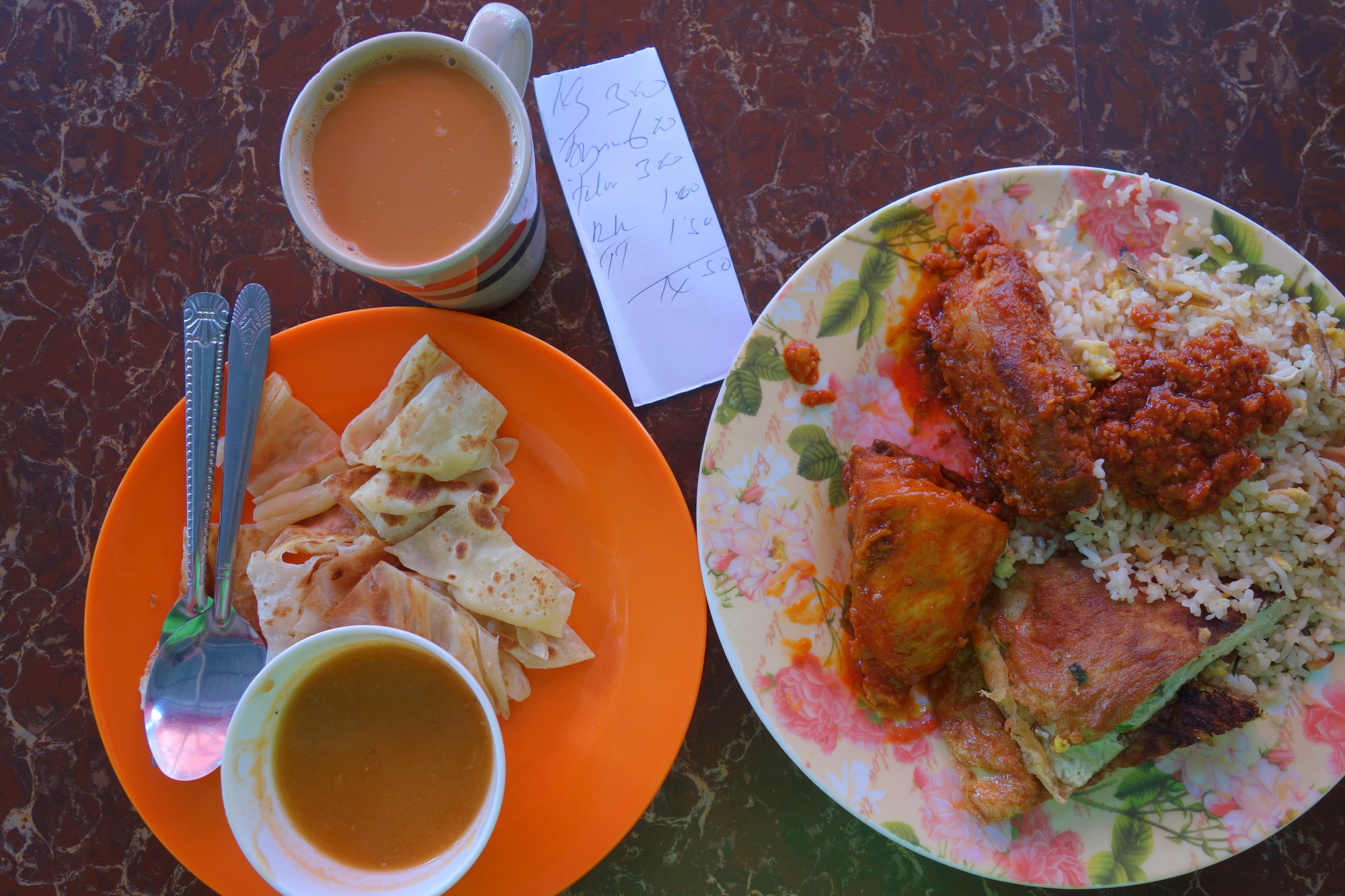 The Sentosa Regency Hotel (92 Ringgit/19 € on agoda) is right next to the CB Motel where I stayed in 2012 but I was keen to have a bit more luxury in my current condition. Coleen and Chris had spent a lazy morning in their Kangar hotel and we met for dinner in the Nasi Kandar right next to my accommodation followed by some late sightseeing. Good day!