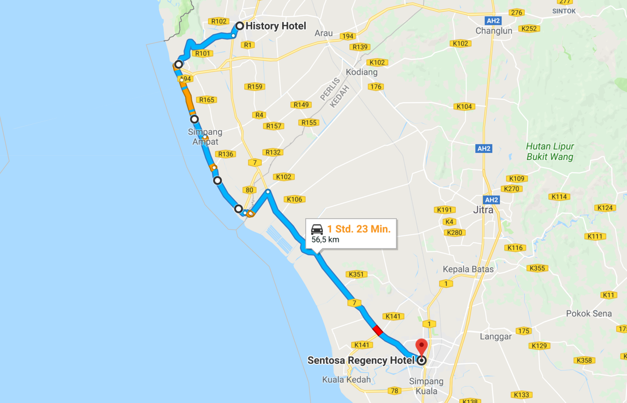 SIM Card: Right opposite the History Hotel in Kangar is the "Tatcom" phone shop where a very friendly young man with excellent English advised me to get a 10 Ringgit Hotlink RED sim card and add an extra 5 MYR which would buy me 7 days / 1.5 gb 4G internet. I actually bought 3 gb (total: 25 MYR) as I learned in 2012 the hotel wifi connections are often very, very slow.