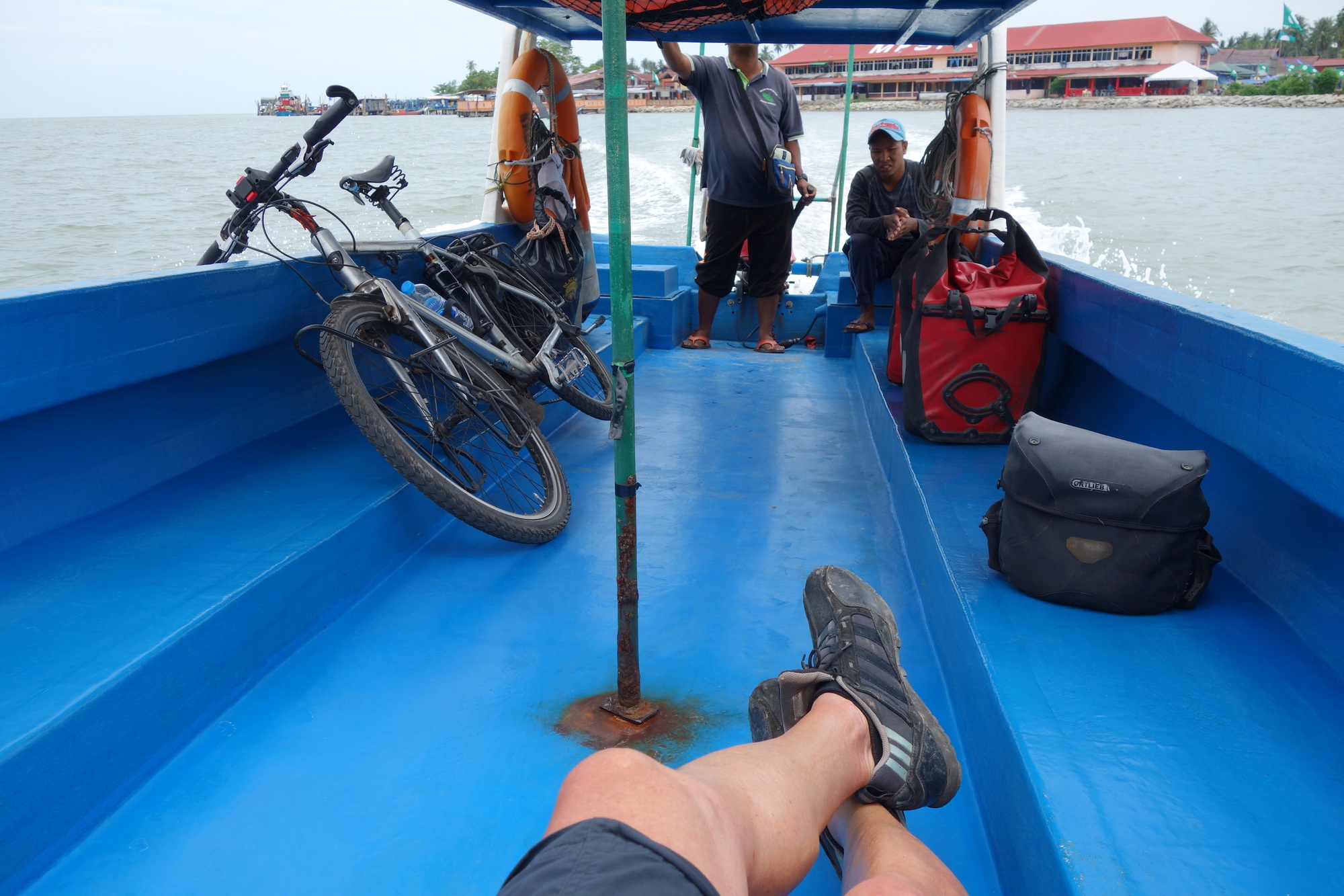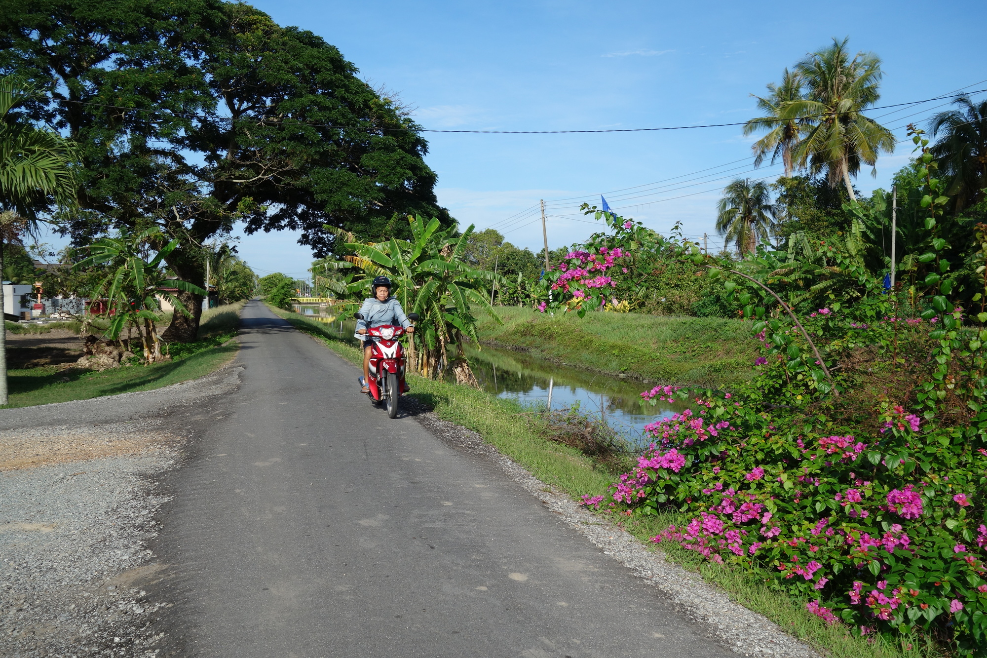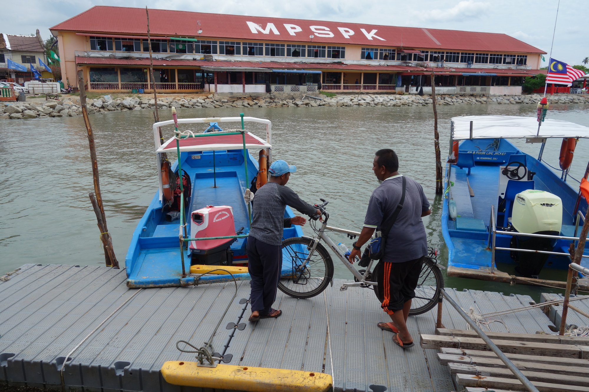 I have done this section in 2012 and had a very long and tough day then due to rain and headwind. But most annoyingly the ferry at Tanjung Dawai crossing the Merdeka River was not operating due to a bank holiday. So I had no other choice than going back and up through Sungai Petani adding 45 km to a total of 135 km. That sort of distance is simply not feasible for me with my current saddlesoreness and despite the lovely ride through Kuala Perlis and then all along the shore on the K1 I was a bit nervous until I got to the pier in Tanjung Dawai seeing the small ferries waiting for customers. I spoke to the ferryman who said I had two options: Wait until the minimum of 5 passengers have gathered and pay 7 (3 plus 4) Ringgit or "charter" the whole boat for myself and pay 20. No hesitation there - we are talking about 4.50 € saving me at least two hours of rather unpleasant cycling. Plus - what I obviously didn´t know as I missed out 6 years ago - the ride from Pantai Merdeka down south until you get onto Hway 1 a few km north of Butterworth is most delightful.