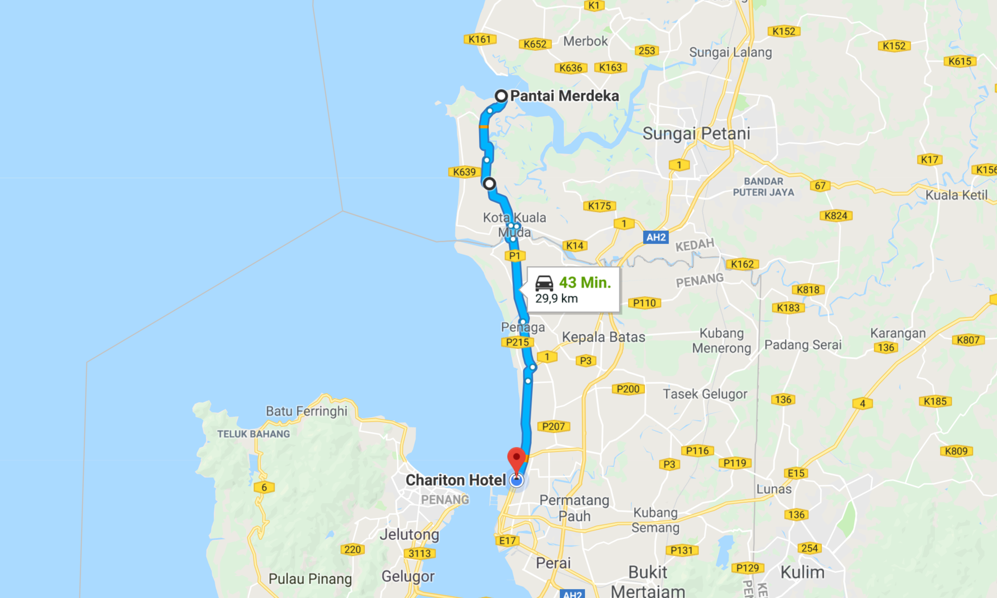 And finally the answer to a question that may arise when you look at the map below: Why have I decided to stay at the Chariton Hotel in Butterworth, just 5 km north of the ferry terminal to Penang, instead of crossing over tonight? Well, it´s just and only an emotional reason. In case the ferry would not have operated again, I would certainly have arrived on Penang late in the evening and very likely not in the mood to fully appreciate passing the finish line after almost 5 months and more than 6300 km. Plus I have been through Butterworth at least 5 or 6 times on my way to or from Penang - why not stay one night and have a closer look?