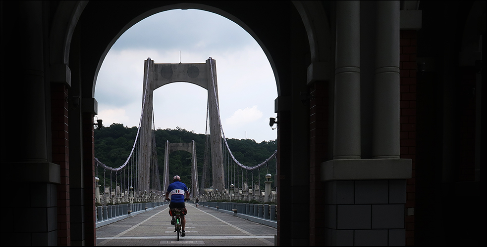 I cross over the ornate suspension bridge, which is all mine today - that's never been the case before. Usually, and especially on weekends, the thing is buzzing with day-trippers.