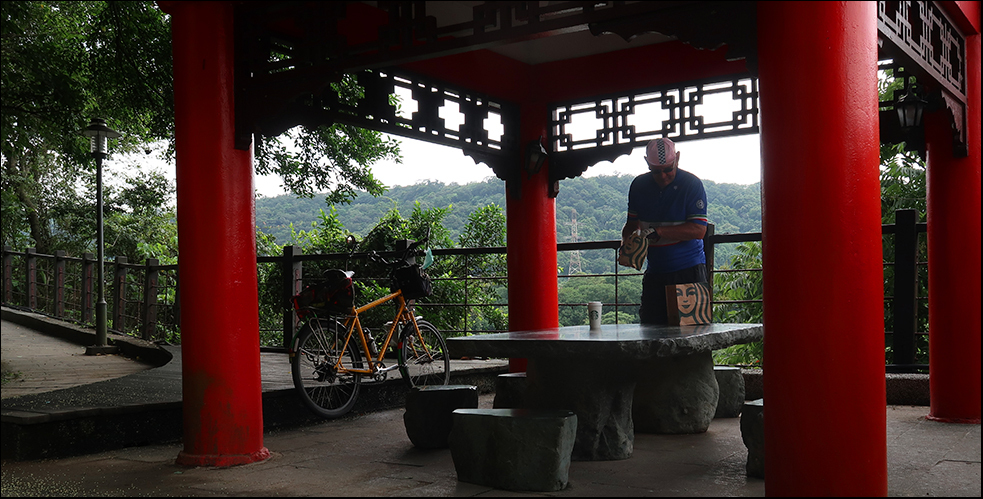 It's not too far to Daxi now and there's a Starbucks in town. I'm ready for a bite to eat.