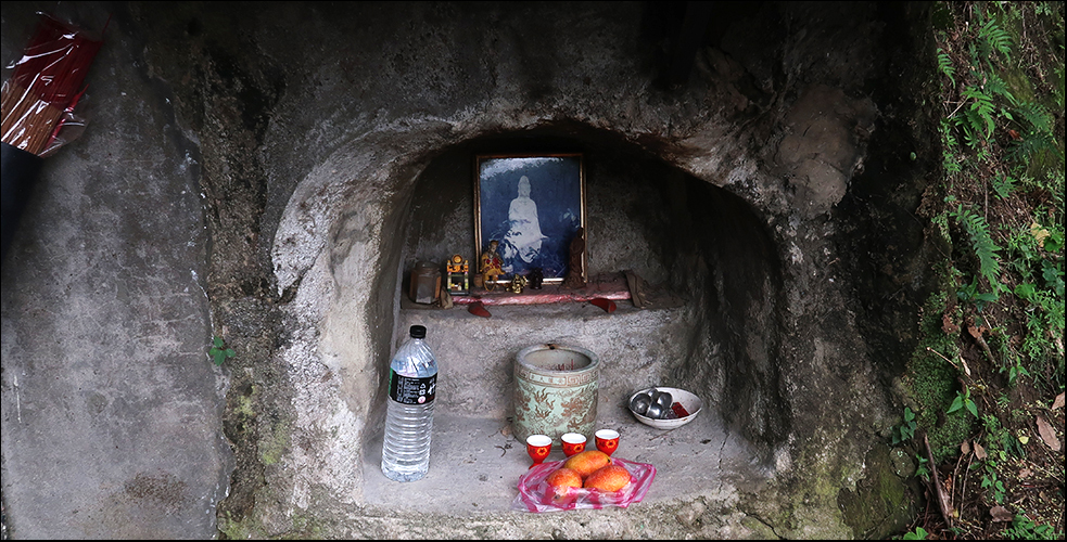 Adjacent is a simple shrine carved into the rock-face that's obviously well maintained, with a few fresh mangoes and a bottle of water left there by someone as offerings.