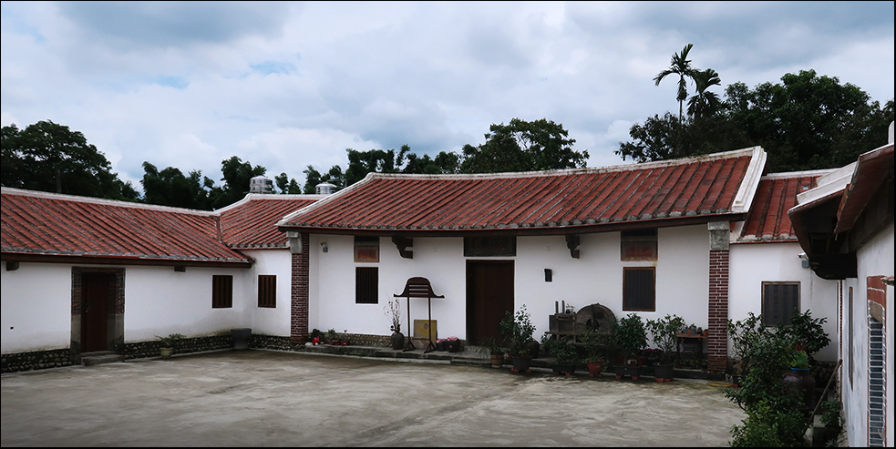 Even though the 4 traces the river downstream, there's a gentle hill for roughly a kilometre. On the way up I remember that there's an old house set back from the road that got renovated a year or two ago and my eyes are peeled for the lane leading to it, which has a small brown information sign and I make a right when it appears. It's called The Jian Family Residence (大溪簡氏古厝).