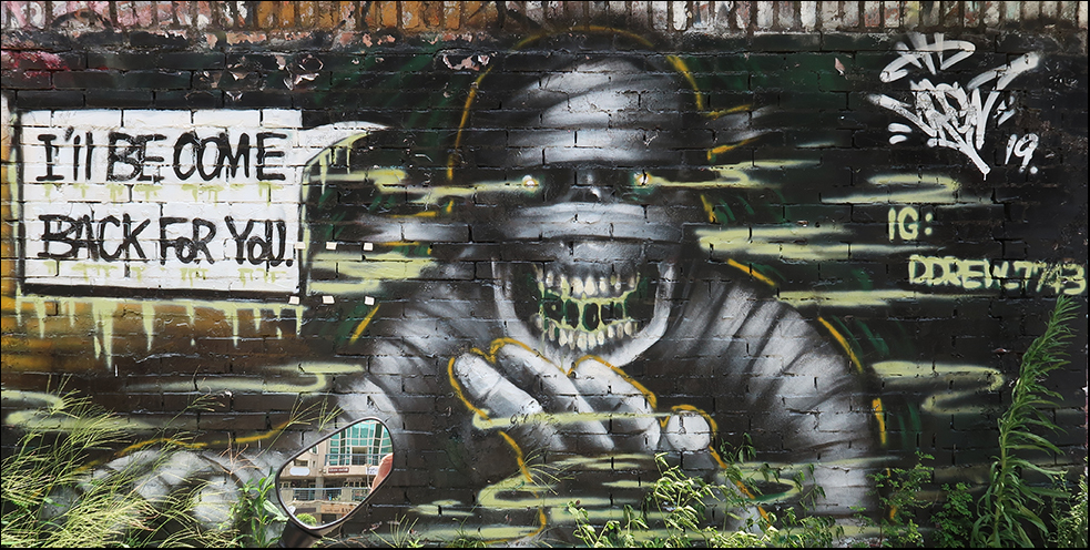 The back lane takes me across the busy ring road and past a university that has an array of graffiti on it's perimeter walls, then it's just another five minutes to get to a charity shop.