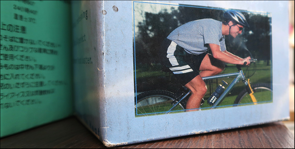 Something I hadn't noticed before is a pump-action 'cool mist' spray. It's basically a plastic bidon with a hand-pump on top that sprays a fine mist onto a rider's face from the end of a narrow hose. What a piece of crap.