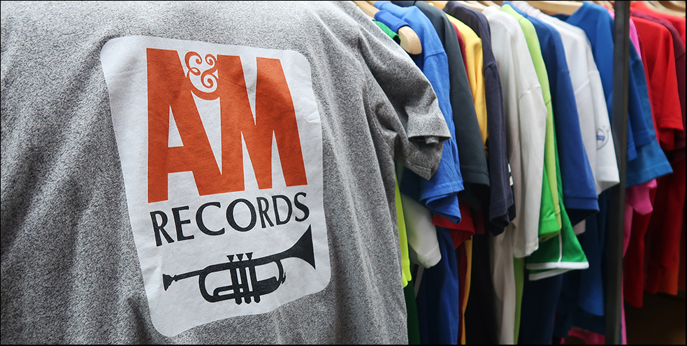 With no AC, it must be over 35°C in the shop and it's too hot to hang around, so I quickly skim through a rack of second-hand T-shirts and spot one with the logo for A&M records on it and wonder if my UK friend Dave, a huge audiophile, would like it. It's NT$150 - about US$5. Off the top of my head I can't recall the artists that were with the label, apart from Herb Albert, and Dave's not into him. I'll send him and pic and ask if he wants it.