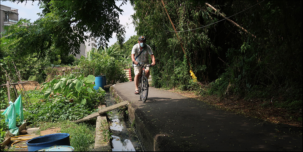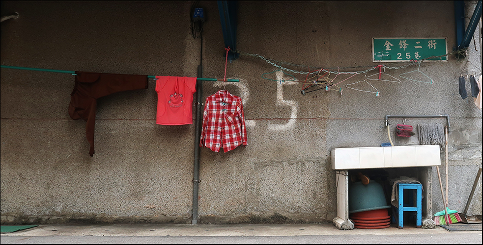 On the corner of the same block is a house - perhaps on alley 25 going by the numbers crudely painted on the wall - which has a robust external rectangular concrete sink. You often see these positioned outside older homes and predate washing machines. A few items of clothing are hanging out to dry on a plastic-covered bamboo pole and it strikes me as a quintessentially Taiwanese street scene.