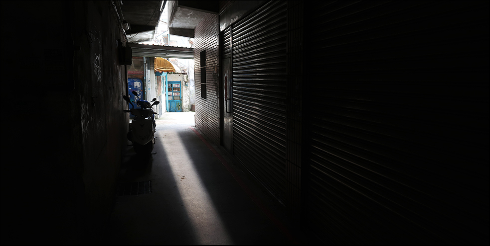 After crossing the ring road, I pedal past the university's perimeter wall and its barricaded entrance and notice sunlight lighting up a strip along a narrow alley that leads to a rabbit warren of small passages. This is student territory and most places are rented out to them, but with all schools being currently closed, there are very few people around and most of the shops are shuttered.