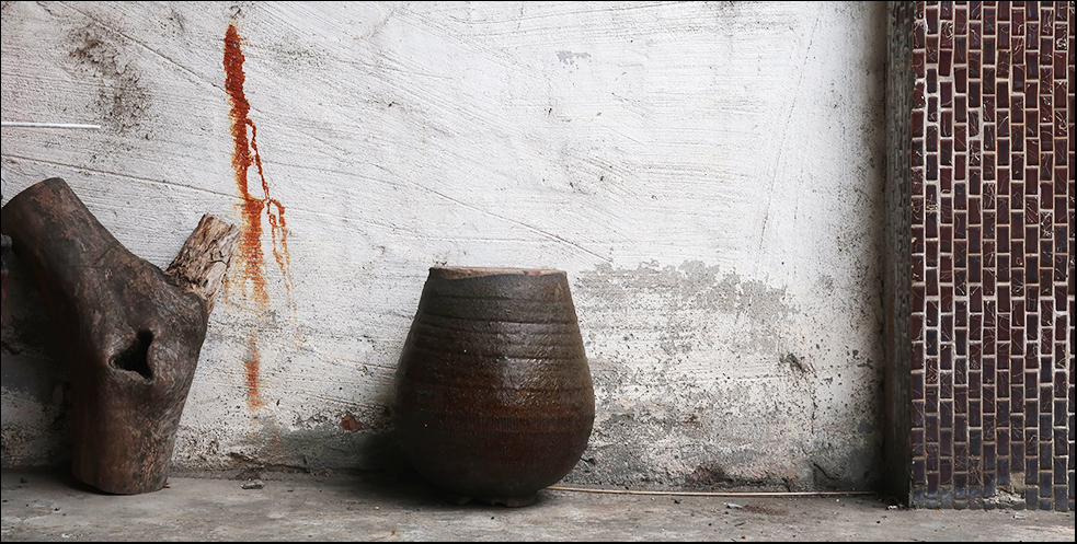 Just a handful of blocks away is a two-storey house that's up for sale. It's clearly standing empty. The six-foot deep yard in front of the door has a few odds and ends that have been left and what catches my eye is a ceramic storage jar that's been upturned. These were used to store things like rice wine and I have a half a dozen of them, as find their rustic, coil-built construction and rudimentary glaze very attractive.