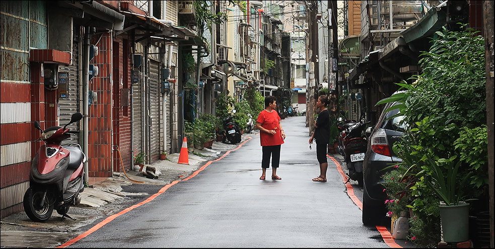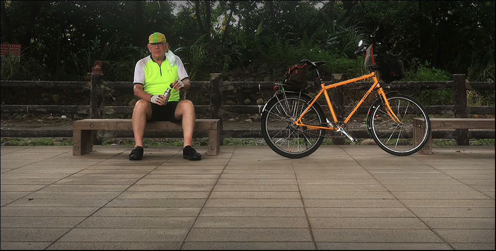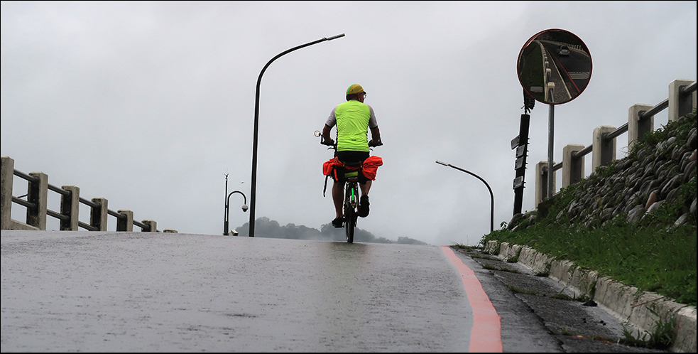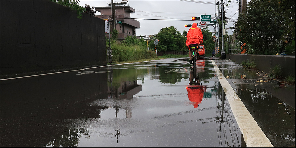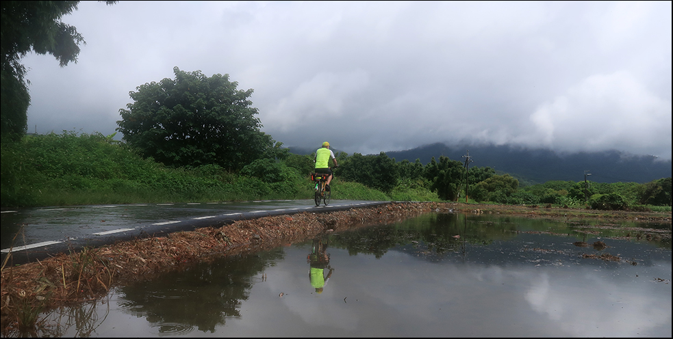 It's now 10:00 and my rain cape is in the saddlebag because there's little doubt it'll rain again before long. Tomorrow Typhoon In-Fa will be closer to Taiwan and things will be worse, and I have to teach over the weekend, so it's now or not for a few days.