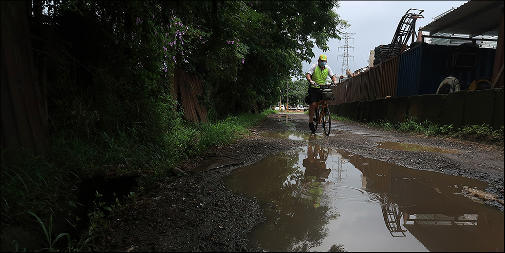 After crossing the main road at the bottom, I go towards a bicycle path near the Dahan River and trace it to the old bridge. For some unfathomable reason (surely not due to COVID) it's now blocked off and there's a subtle sense of relief sweeps over me that my plan wasn't to go across into Daxi, like I did on Monday. Then it starts to rain.
