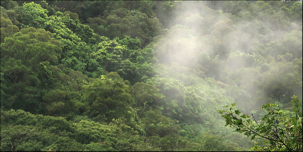 The downpour comes in waves and as one seems to signal the end, another one arrives with a vengeance. My cape is pretty good, but it seems best to simply wait these out.