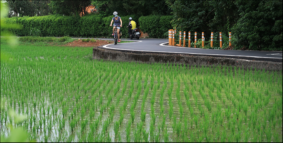 Initially the path curves around a couple of ride paddies that have shoots about 150 millimetres tall. It doesn't take long to grow and in some parts of the country, farmers can cultivate three crops a year.