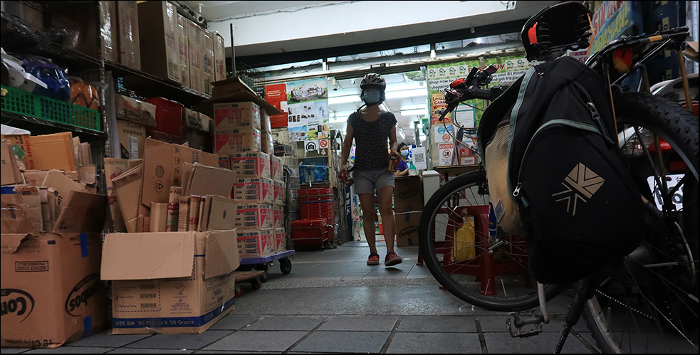 Debbie wants to go to a shop along a pedestrian street that sells coconut milk cheap. It's run by immigrants - likely from Thailand or Vietnam, but maybe the Philippines. The street is usually full of immigrant workers on weekends, but with Covid, it's relatively quiet today with many companies confining their workers to dormitories.