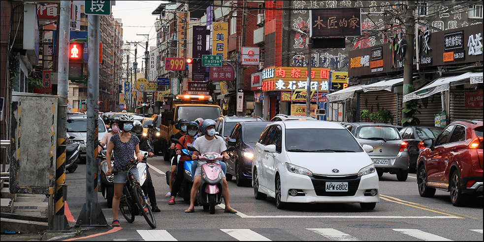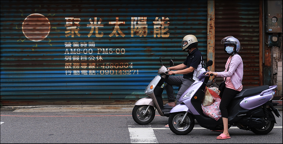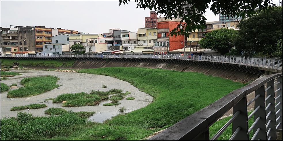 After a few minutes's of cycling and crossing over Route 113 we get to another rider-side bike path, this one beside the Laojie, which when you look at a map runs parallel to the the smaller river. I used to confuse the two - still do sometimes. Neither flows in anything like a straight line - they both follow a wiggling path eastwards to the coast - and are shallow for most of the year. There's been a lot of rain recently, and this one is flowing quite fast.