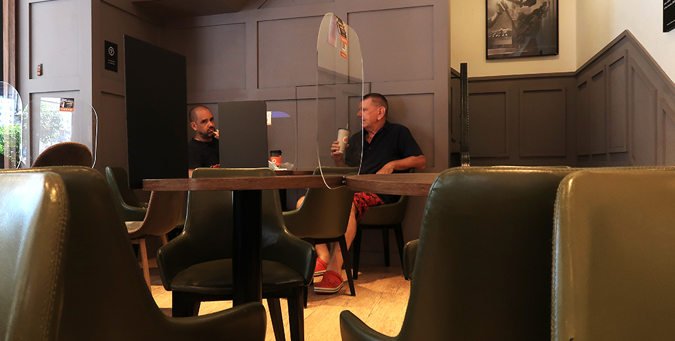 There are laminated A4 notices saying each table is to have just one person, but we share, as the perspex screen between them isn't going to make a lot of difference. However, one of the staff comes over after 15 minutes to say that one of us must move seats. It's less than a foot away, but my guess is the shop could be fined for not strictly following Covid regulations.