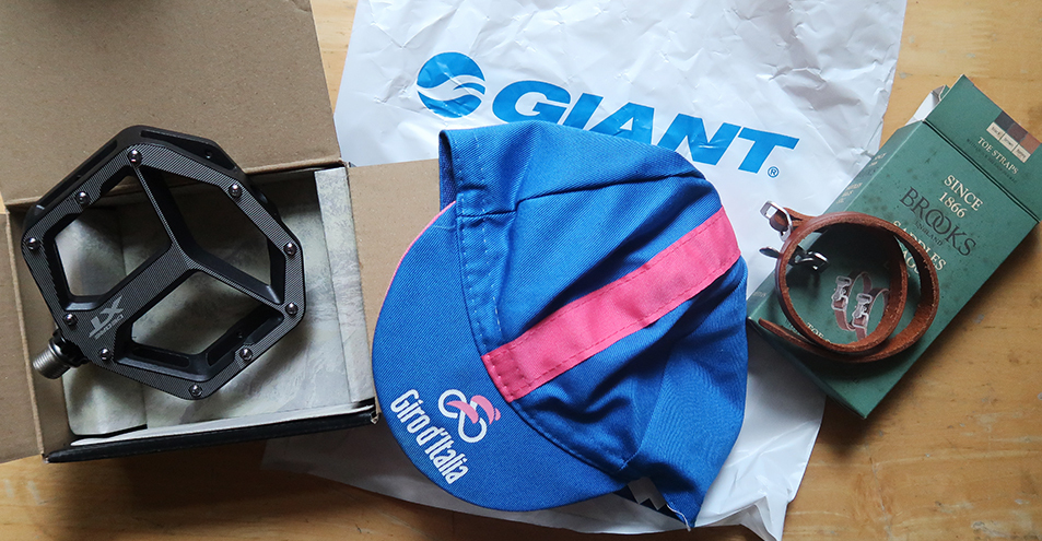 While some MKS ones look very nice and can have toe cages fitted, they're like hen's teeth and after visiting a couple of local bike shops earlier this week I opted to get some Shimano XT ones. The price seemed reasonable - half of my stimulus vouchers - and while there I also treated myself to a cotton cycling cap and a pair of Brooks leather straps that can be used on one of my saddlebags. These were old stock and had already been drastically reduced from NT$1,500, but the guy in the Giant shop let me have them for NT$500. Bargain.