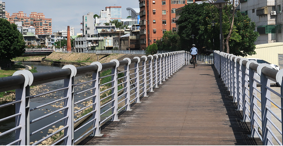 The ring road gets to another river and we initially veer along its eastern bank, cycling now on a path that was built not too many years ago.