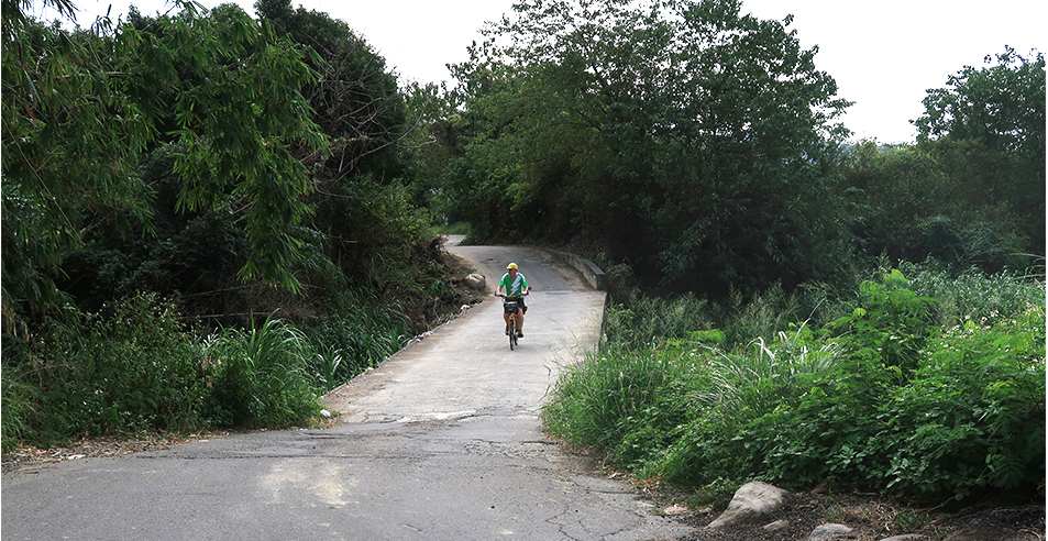 The route comes to a rudimentary bridge that lacks rails or any safety features and after that I follow it east towards Taiwan's west coast.