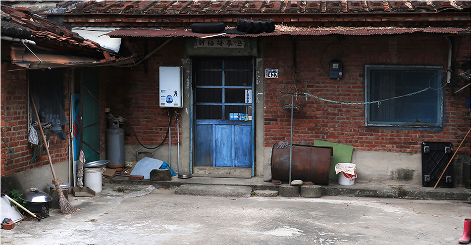 Aesthetics don't get a high priority in Taiwan and one dwelling with corrugated cladding has number 50 painted on it and I stop and take a photo and two dogs that are guarding the place bark at me like crazy. They're both chained up.