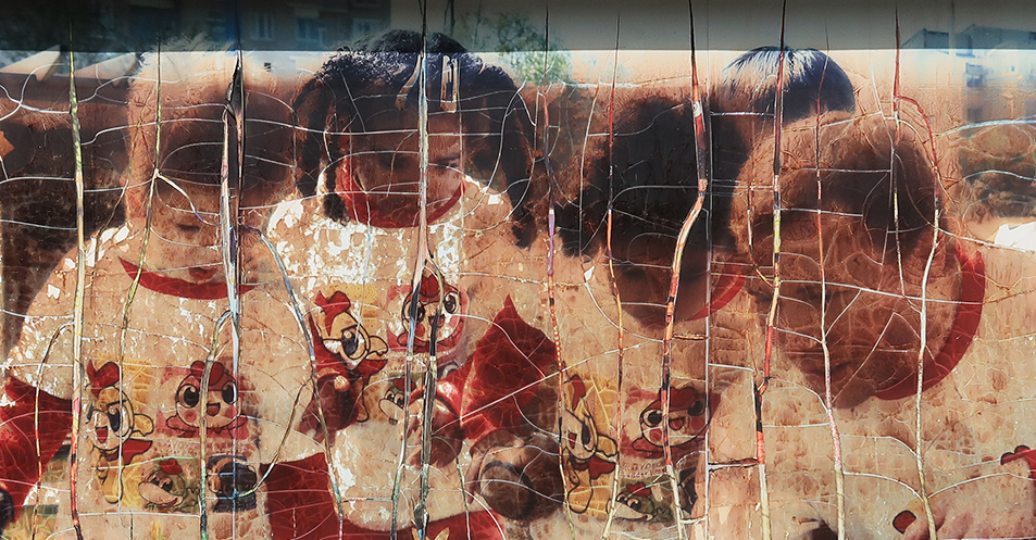 The route takes me on the very familiar one towards Longtan and there's not much to photograph that I haven't already, but a large poster on the end of a school building is seriously faded and cracked from the summer sun and looks worth stopping for. As soon as I have a women aged about 40 appears in the kindergarten's yard and purposefully walks over and asks me what's happened and I tell her the poster has aged.