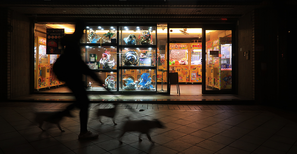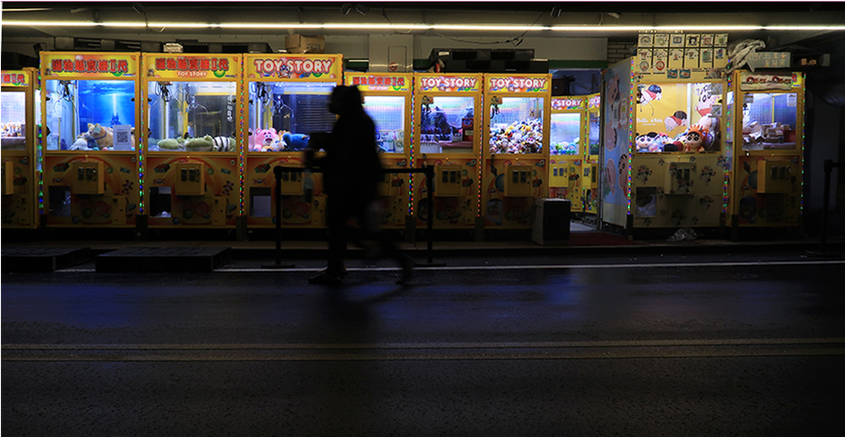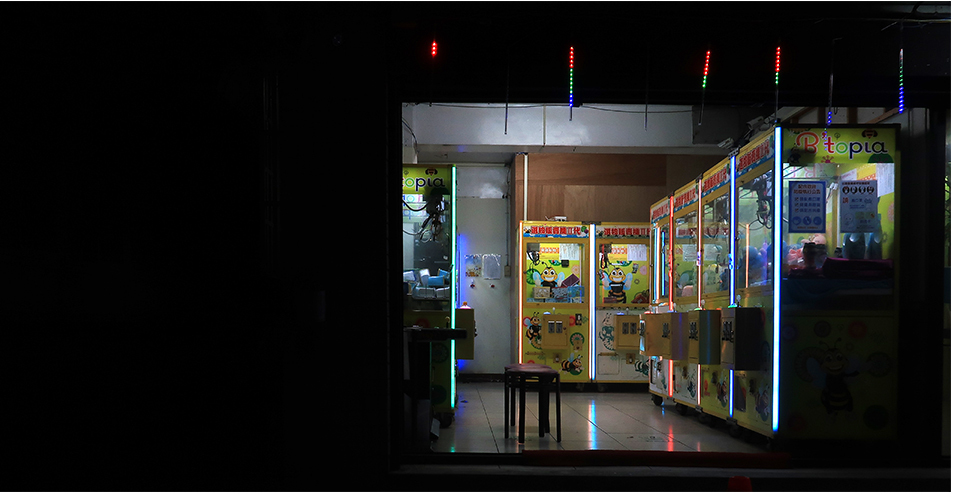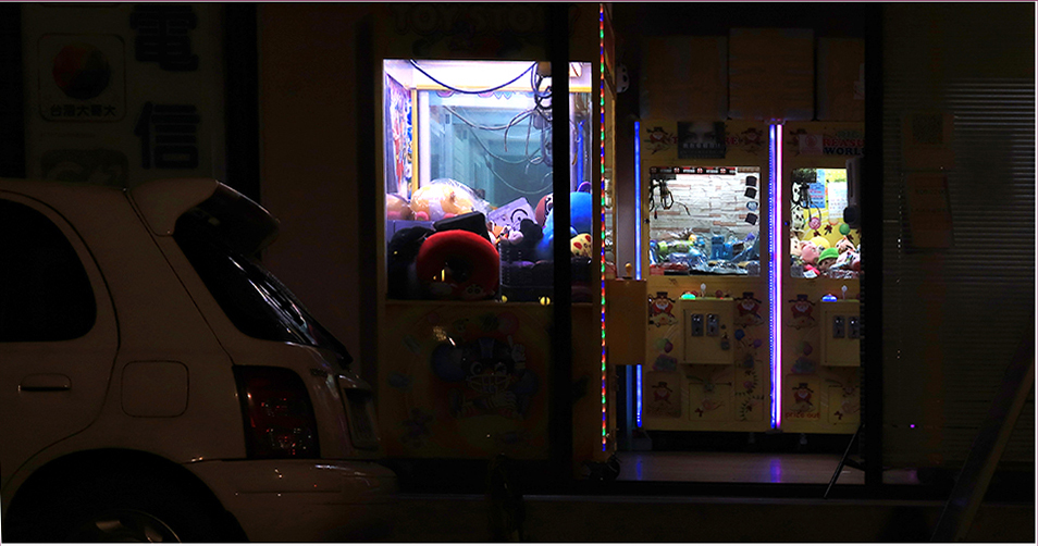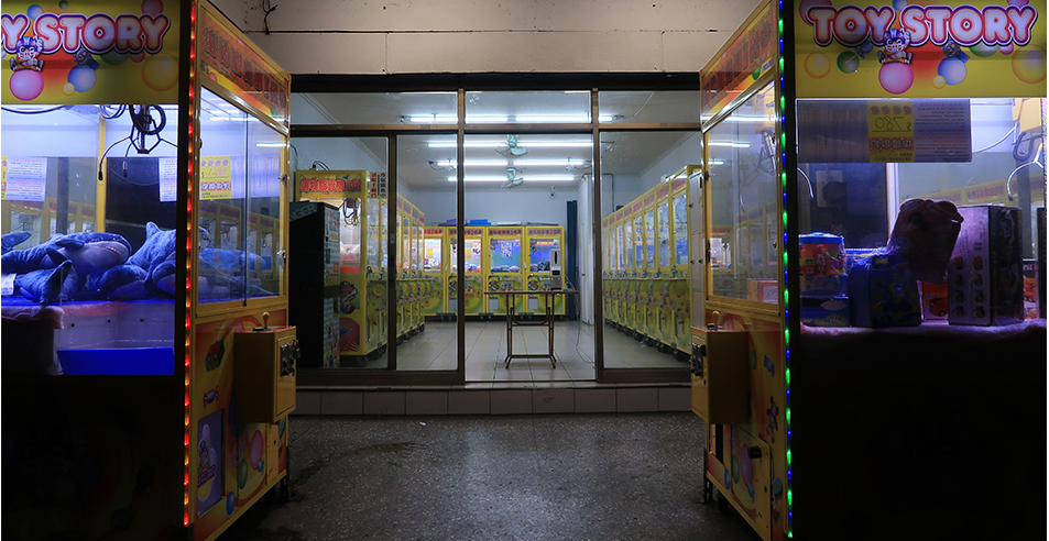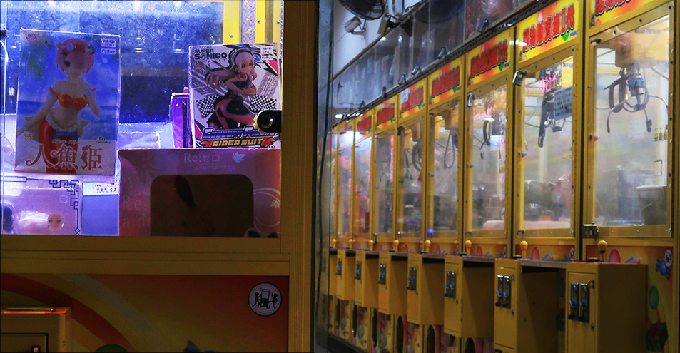 My tripod gets used for a few more photos and I ride a couple of blocks back to the 114 and soon find a couple of arcades with claw machines after crossing the ring road. There are no customers inside.